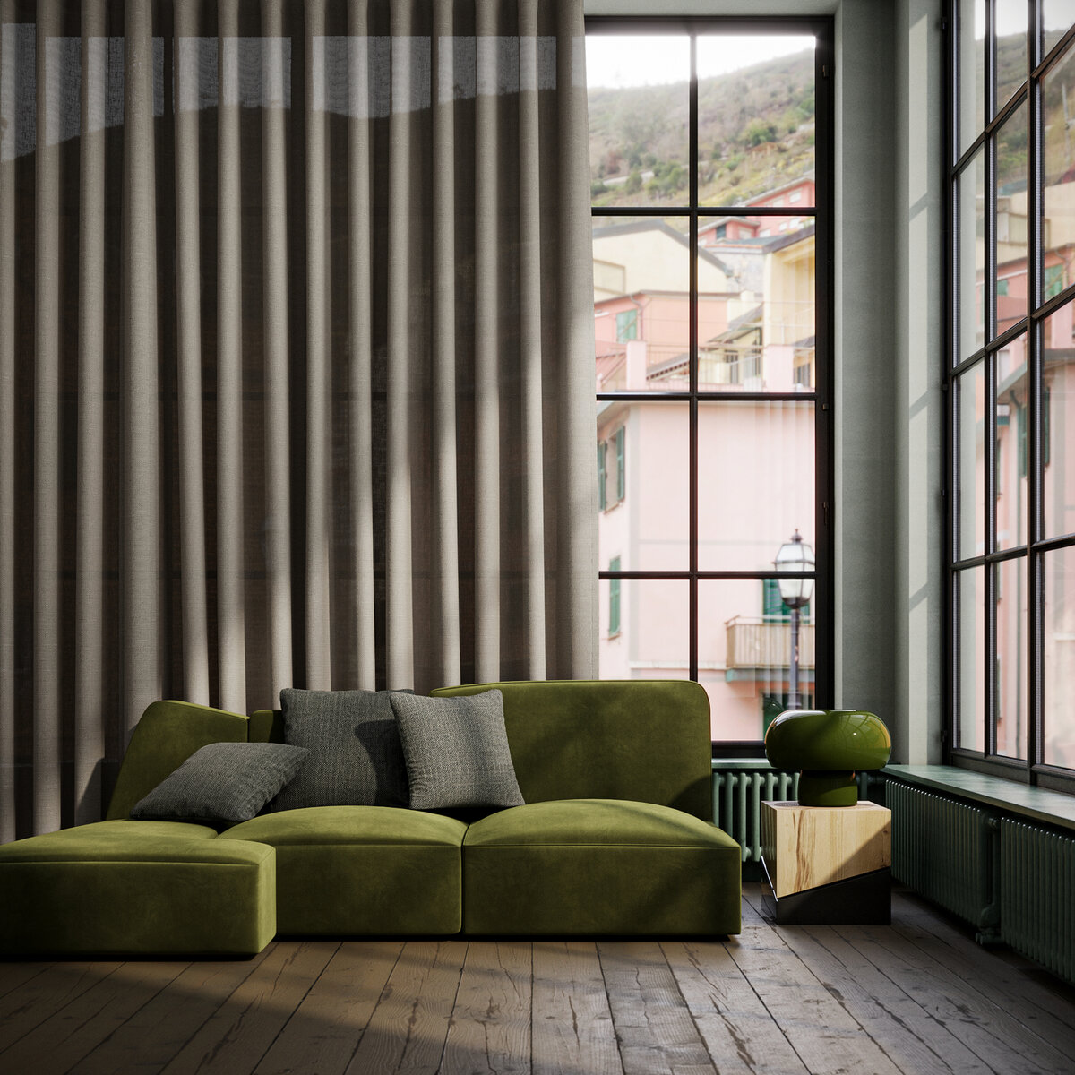 METROPOLITAN fabric is resolutely cosmopolitan, supple, and emotionally charged. Its texture evokes natural materials, it is voluminous to the touch, and its colors are strikingly beautiful. It is available in deep, soothing shades, through invigorating intermediate hues, to discreet and delicate tones. The beautiful opulence of the fabric makes it voluminous, which lends itself perfectly to draping. Industrial looks, velvety furniture, colorful walls, and modern tiled floors all adore METROPOLITAN.