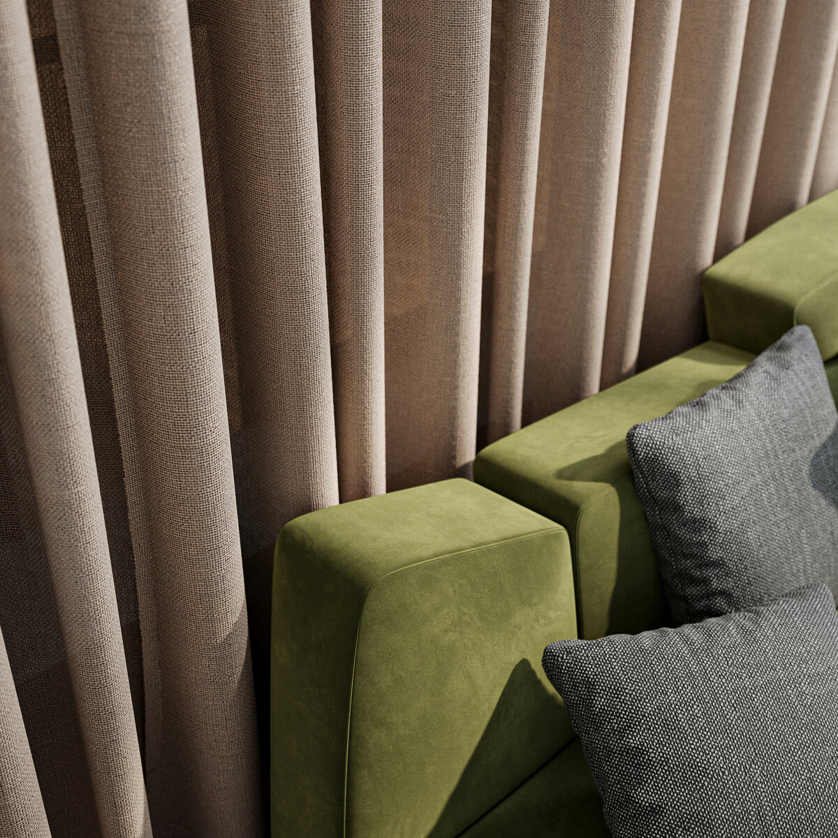 METROPOLITAN fabric is resolutely cosmopolitan, supple, and emotionally charged. Its texture evokes natural materials, it is voluminous to the touch, and its colors are strikingly beautiful. It is available in deep, soothing shades, through invigorating intermediate hues, to discreet and delicate tones. The beautiful opulence of the fabric makes it voluminous, which lends itself perfectly to draping. Industrial looks, velvety furniture, colorful walls, and modern tiled floors all adore METROPOLITAN.