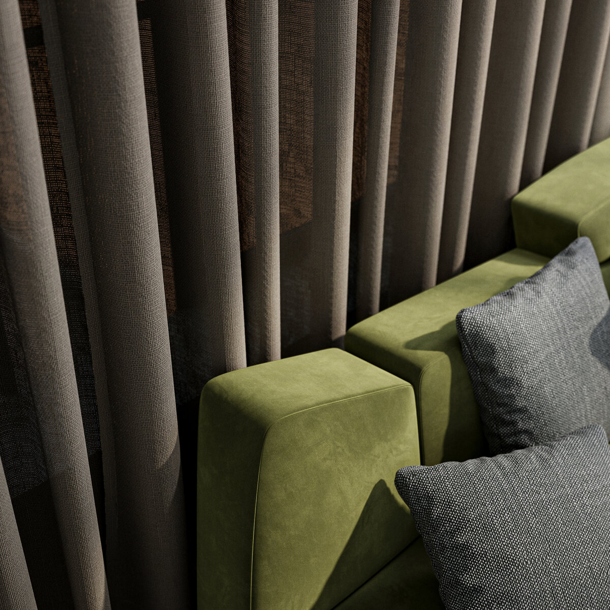 METROPOLITAN fabric is resolutely cosmopolitan, supple, and emotionally charged. Its texture evokes natural materials, it is voluminous to the touch, and its colors are strikingly beautiful. It is available in deep, soothing shades, through invigorating intermediate hues, to discreet and delicate tones. The beautiful opulence of the fabric makes it voluminous, which lends itself perfectly to draping. Industrial looks, velvety furniture, colorful walls, and modern tiled floors all adore METROPOLITAN.