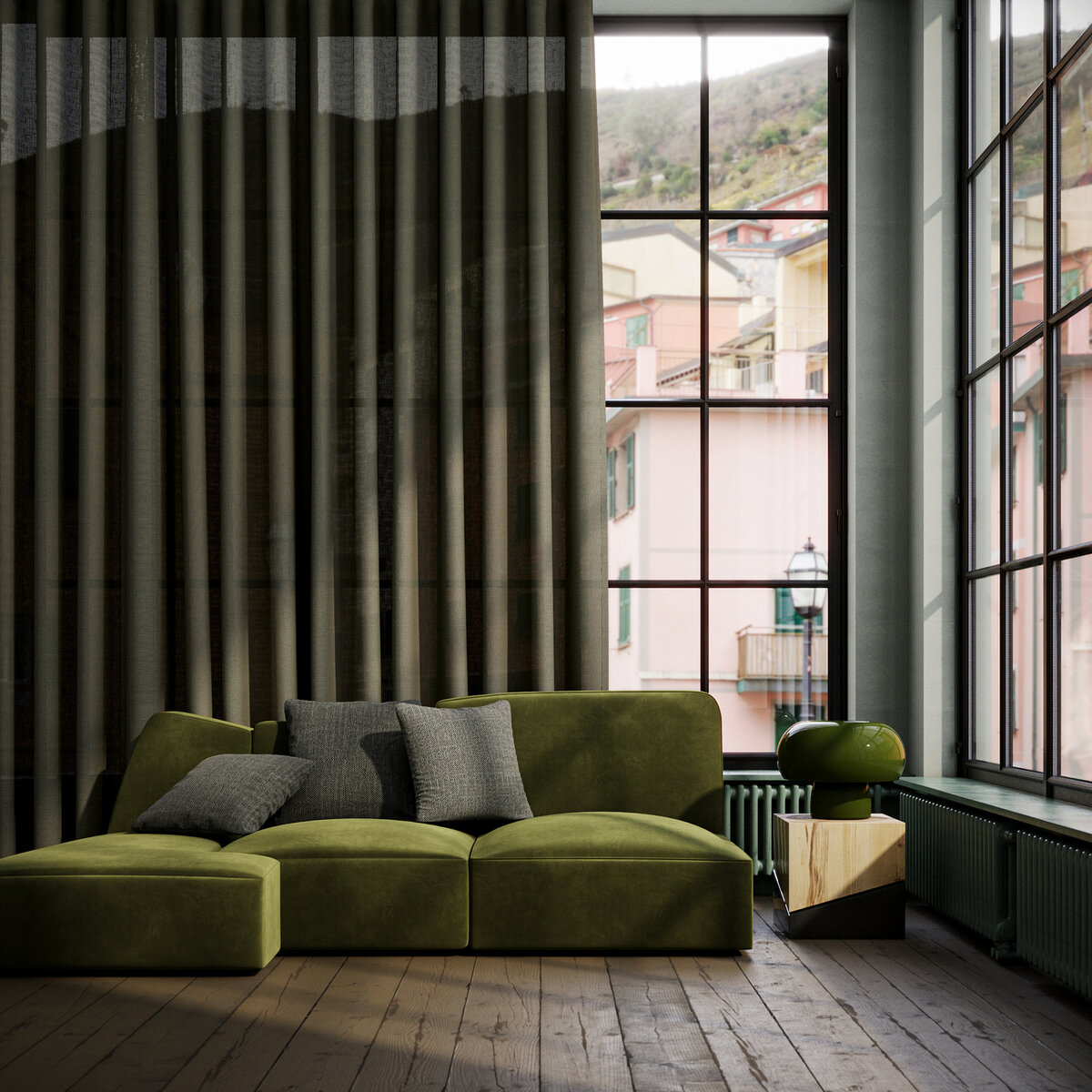METROPOLITAN fabric is resolutely cosmopolitan, supple, and emotionally charged. Its texture evokes natural materials, it is voluminous to the touch, and its colors are strikingly beautiful. It is available in deep, soothing shades, through invigorating intermediate hues, to discreet and delicate tones. The beautiful opulence of the fabric makes it voluminous, which lends itself perfectly to draping. Industrial looks, velvety furniture, colorful walls, and modern tiled floors all adore METROPOLITAN.