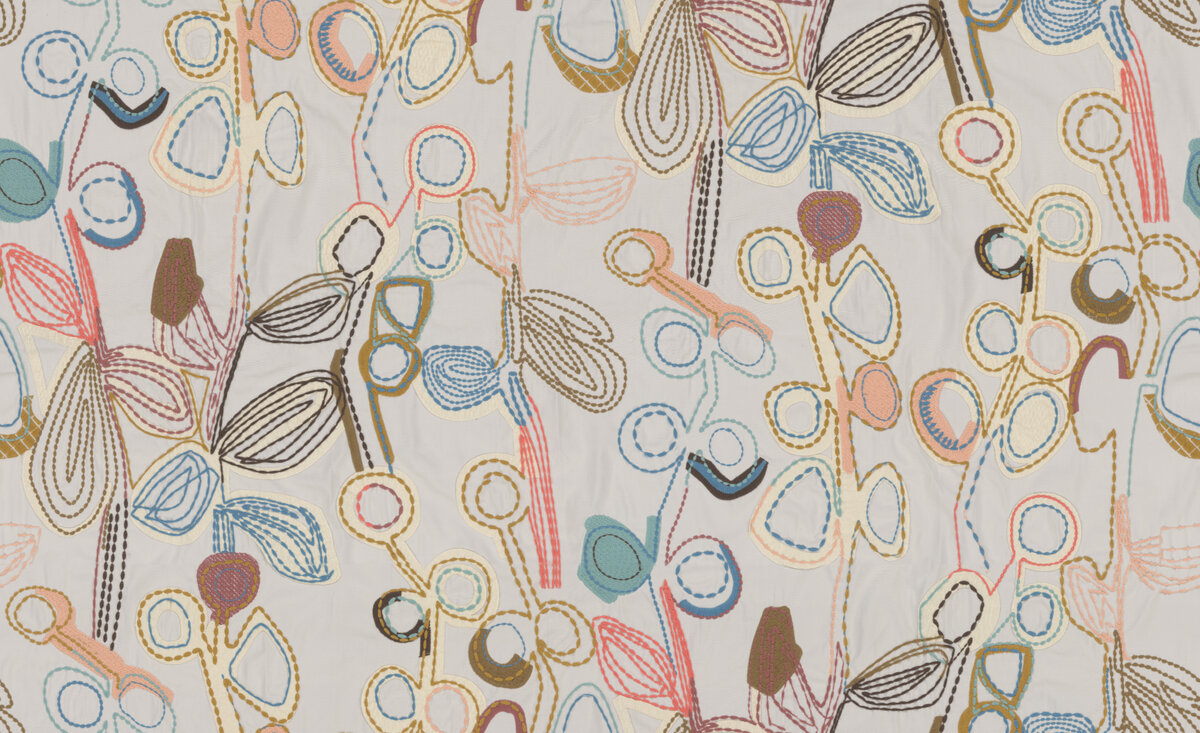 The subtle irregularities of the stitching give the pattern a painterly quality—a dynamic interplay of lines, surfaces, and textures reminiscent of botanical sketchbook studies. The result is a fabric alive with movement, detail, and character.