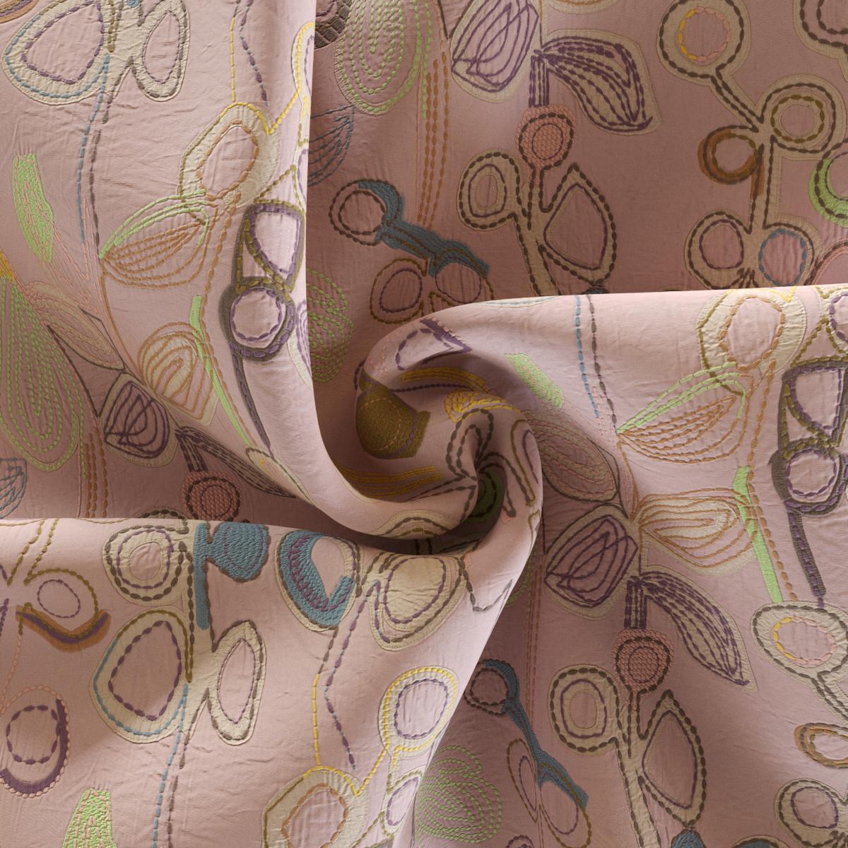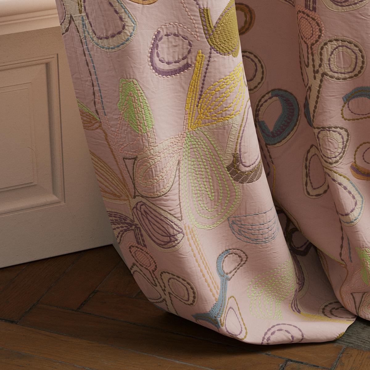 This fresh, all-over design—adorned with thoughtfully placed embroidery—captures the decorative richness of a garden in full bloom. Set against softly shimmering cotton satin, hand-drawn lines come to life through embroidery in varying expressions: some outlined with delicate precision, others fully appliquéd to create depth and contrast.