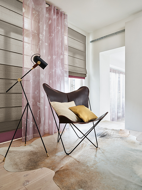 MILFOIL is lovely by its very nature. Its pattern, made up of the delicate stalks of grass and ferns in smoke blue and sunrise pink, was inspired by the method of developing photographs from negatives invented in 1834. On a positive note, if you like this fabric, then we’re pleased to reveal that it is also available in the colours milfoil white and feather grey.