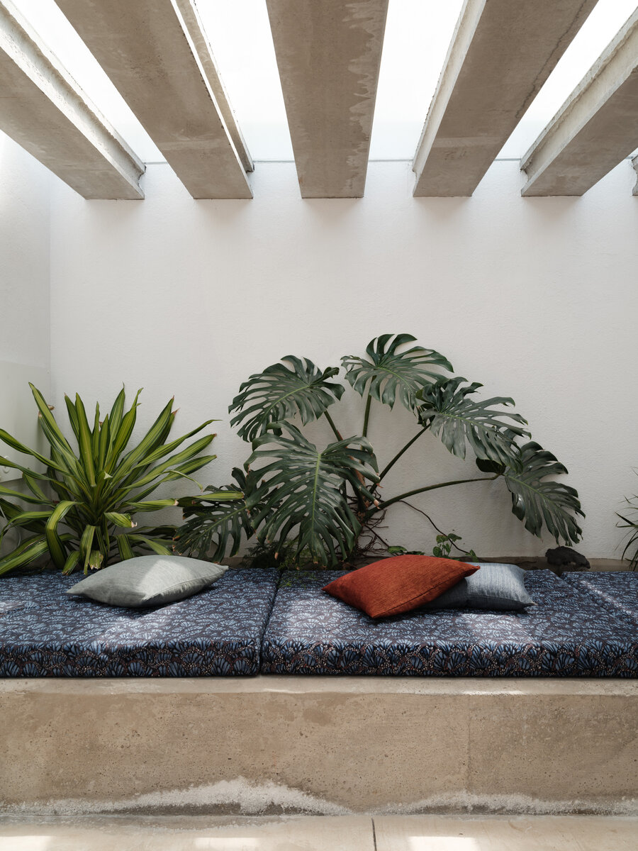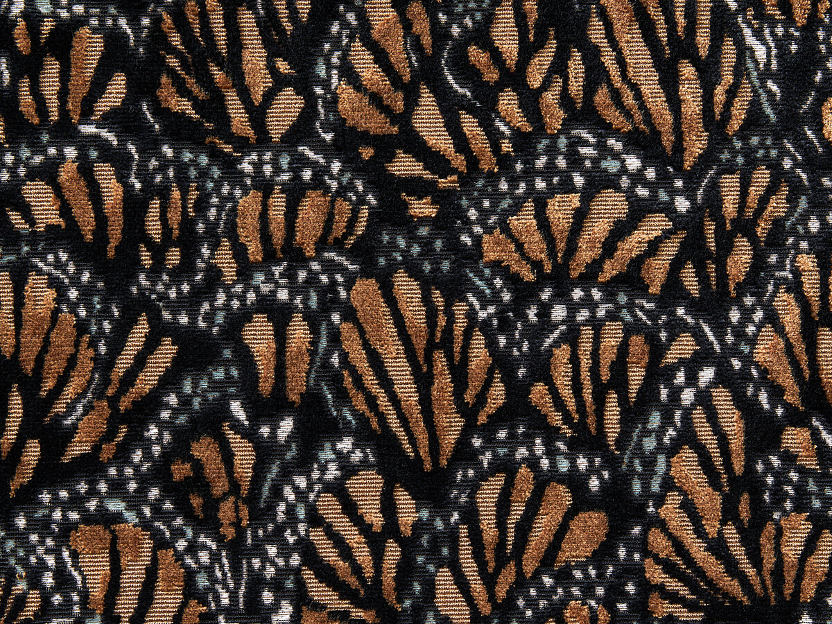 When thousands upon thousands of monarch butterflies congregate in Mexico to overwinter, it’s a breathtaking sight. The oscillating movement of their wings, as these migratory butterflies hang in colonies in the trees, with their black and white markings on a warm orange background, truly are a work of art, as well as being a vital part of the entire ecosystem. Reason enough to dedicate probably the most extraordinary item in this collection to this natural phenomenon. A jacquard velour made of certified organic cotton recreates the butterfly colonies in such a sophisticated way that it will turn every piece of furniture into a work of art.