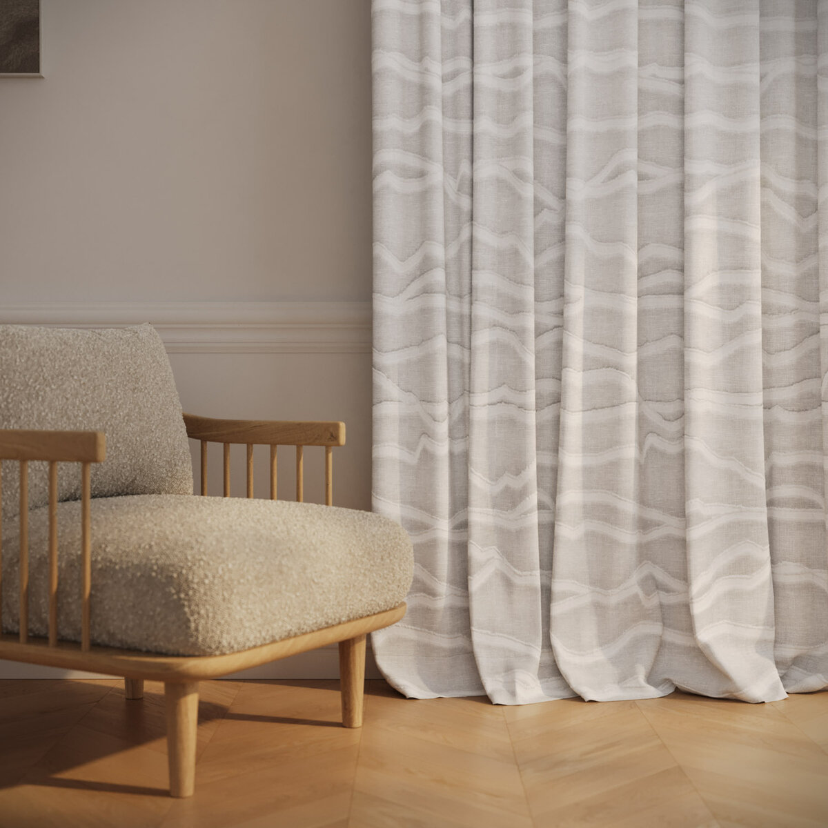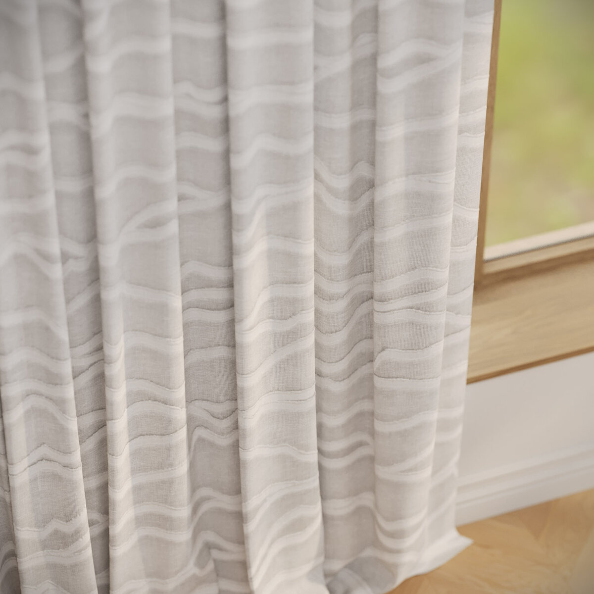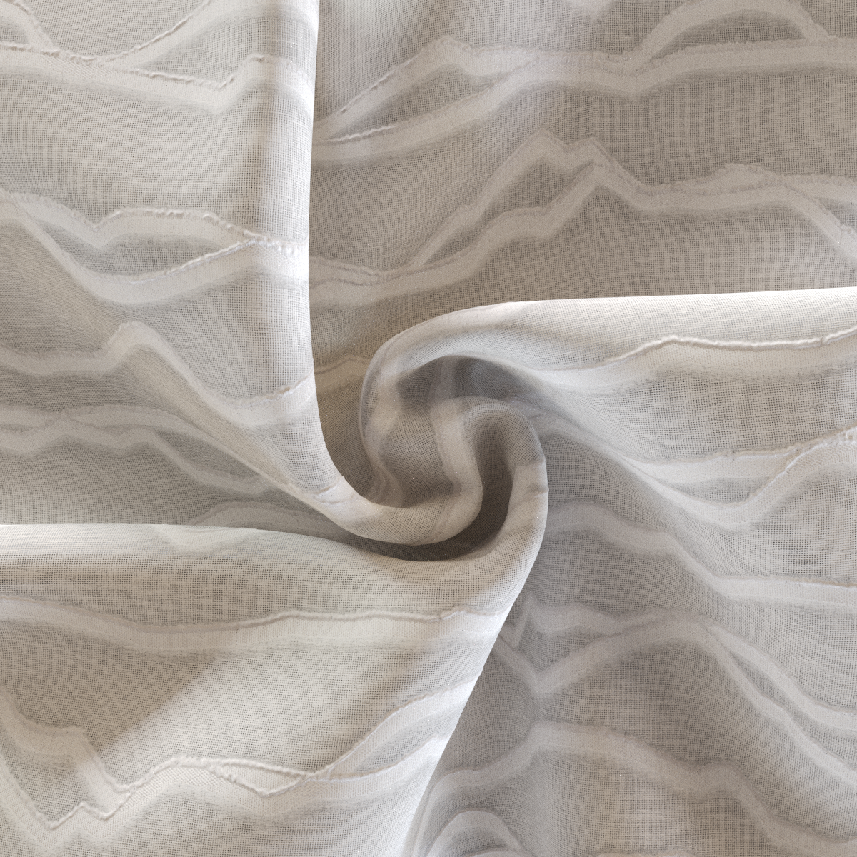 MONTARA blends craftsmanship with airy, alpine charm. Jute fil coupé waves echo mountain landscapes, rustic yet refined. The contrast between natural jute and a delicate transparent ground creates a balance of authenticity and elegance. In shades from winter white to soft linen, MONTARA brings nature home — distinctive and warm.