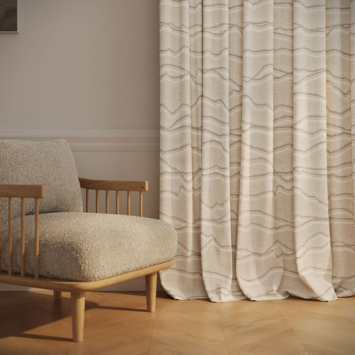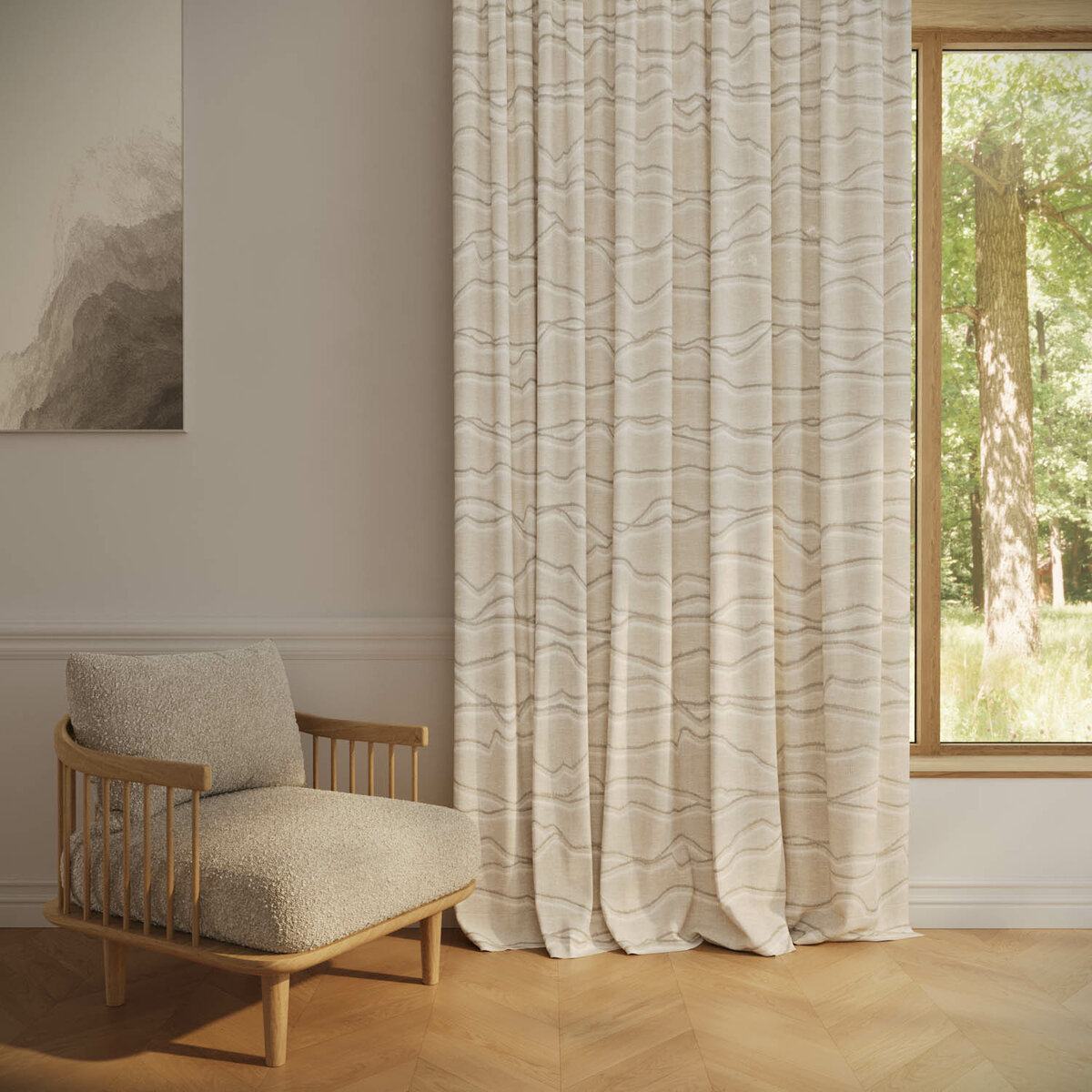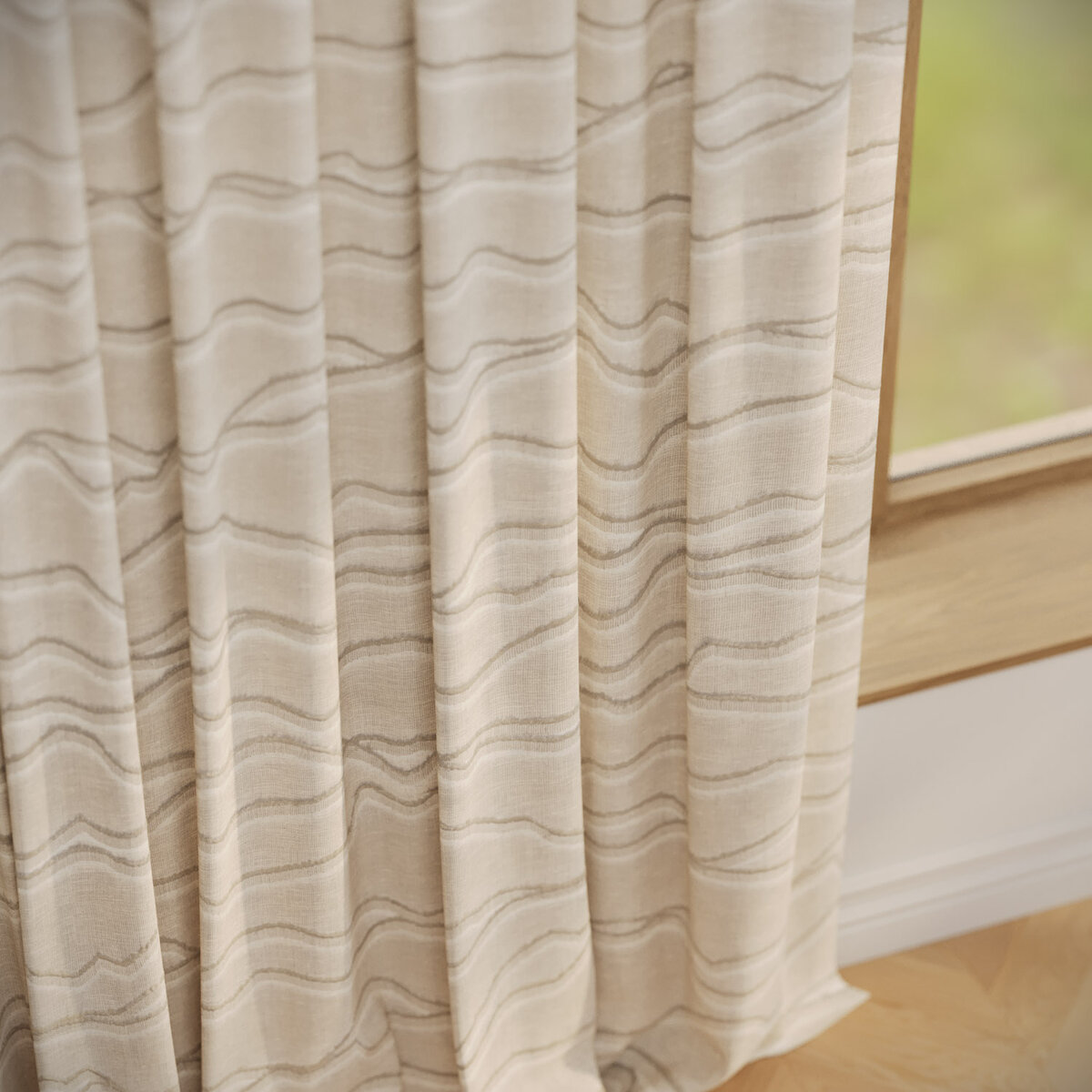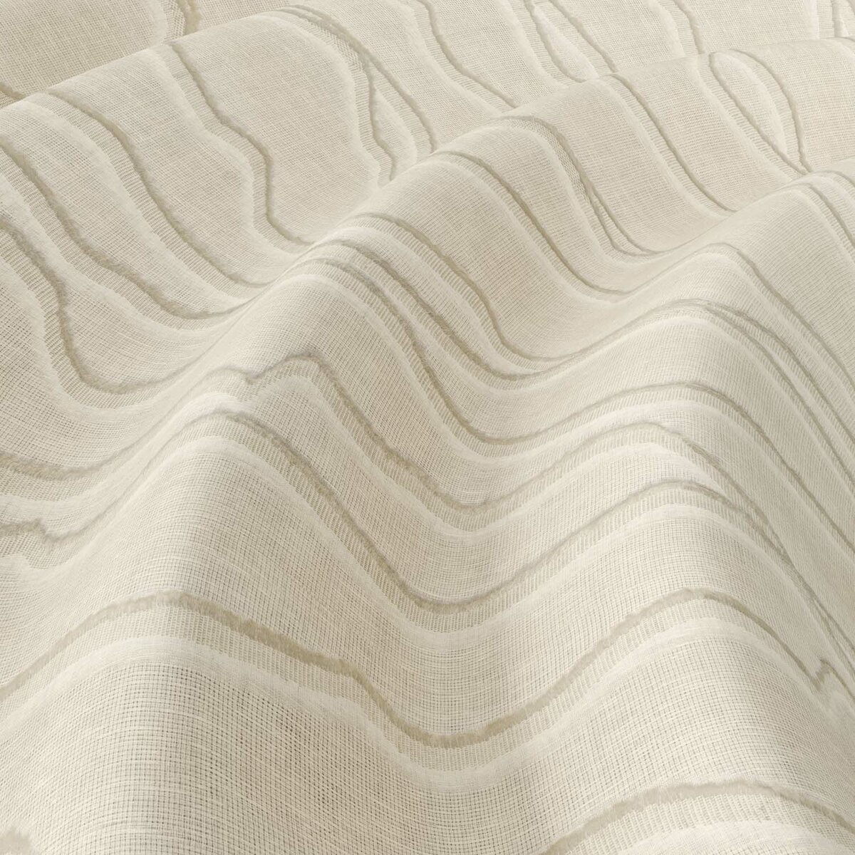MONTARA blends craftsmanship with airy, alpine charm. Jute fil coupé waves echo mountain landscapes, rustic yet refined. The contrast between natural jute and a delicate transparent ground creates a balance of authenticity and elegance. In shades from winter white to soft linen, MONTARA brings nature home — distinctive and warm.