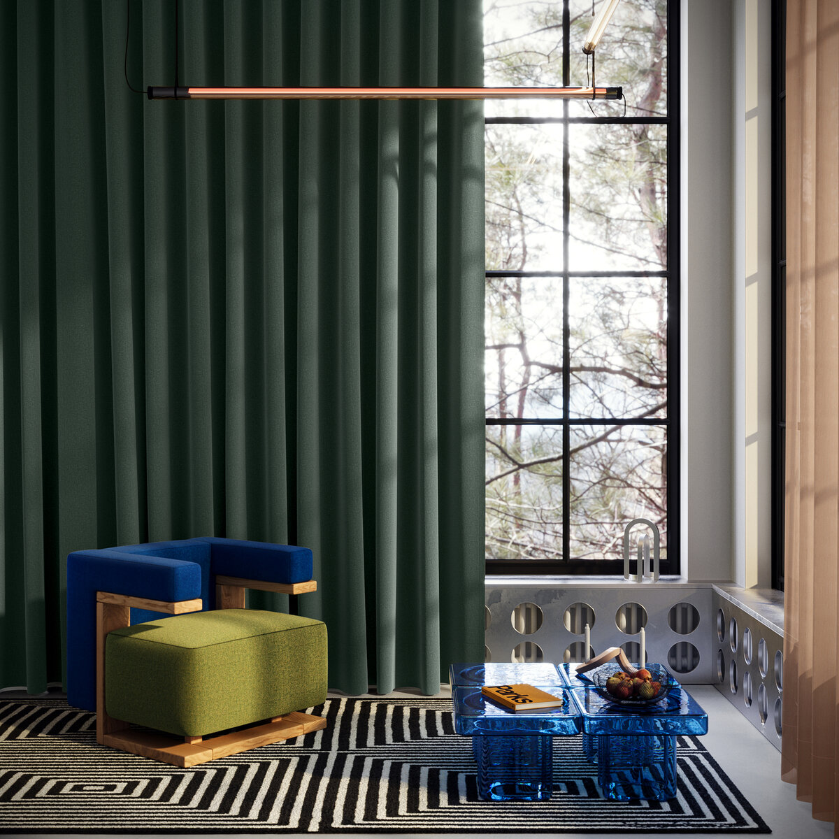 From muted neutrals to bold accents, it’s ideal for luxury hotels, refined residential areas, or sleek offices. Flame-retardant, washable, and optionally weighted, it’s a true all-rounder with a luxurious look.