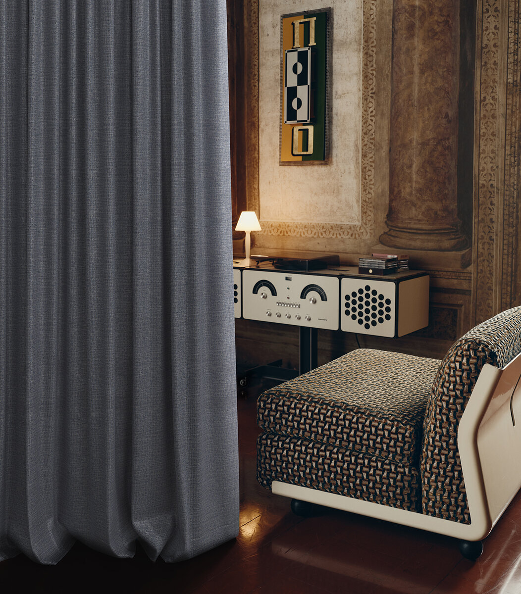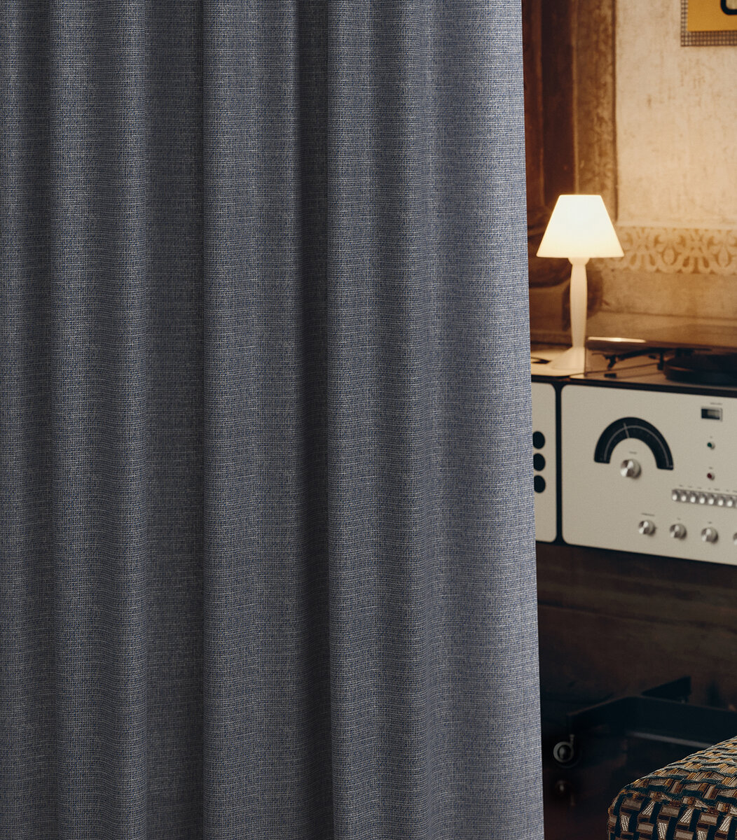 In addition to its dimout function, the floor-length fabric helps insulate any room and has sound-absorbent functions. Thanks to its flame-retardant properties, this multifunctional fabric is suitable for both private and public spaces.