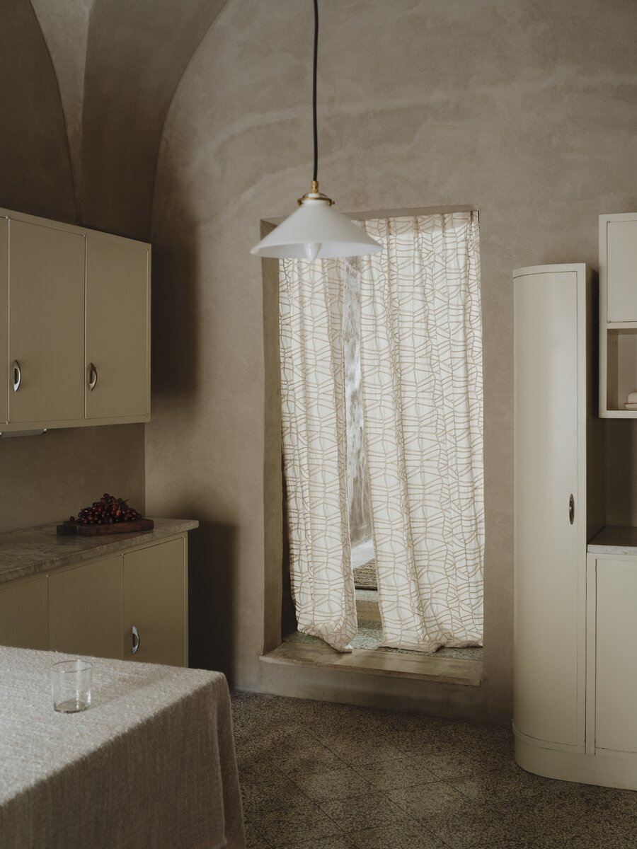 Nazca is a wide-width fabric boasting Cornely embroidery. It’s a yarn-dyed cloth made of pure linen, certified according to GOTS standards. A stone-wash finish provides the material with a beautiful texture and structure.