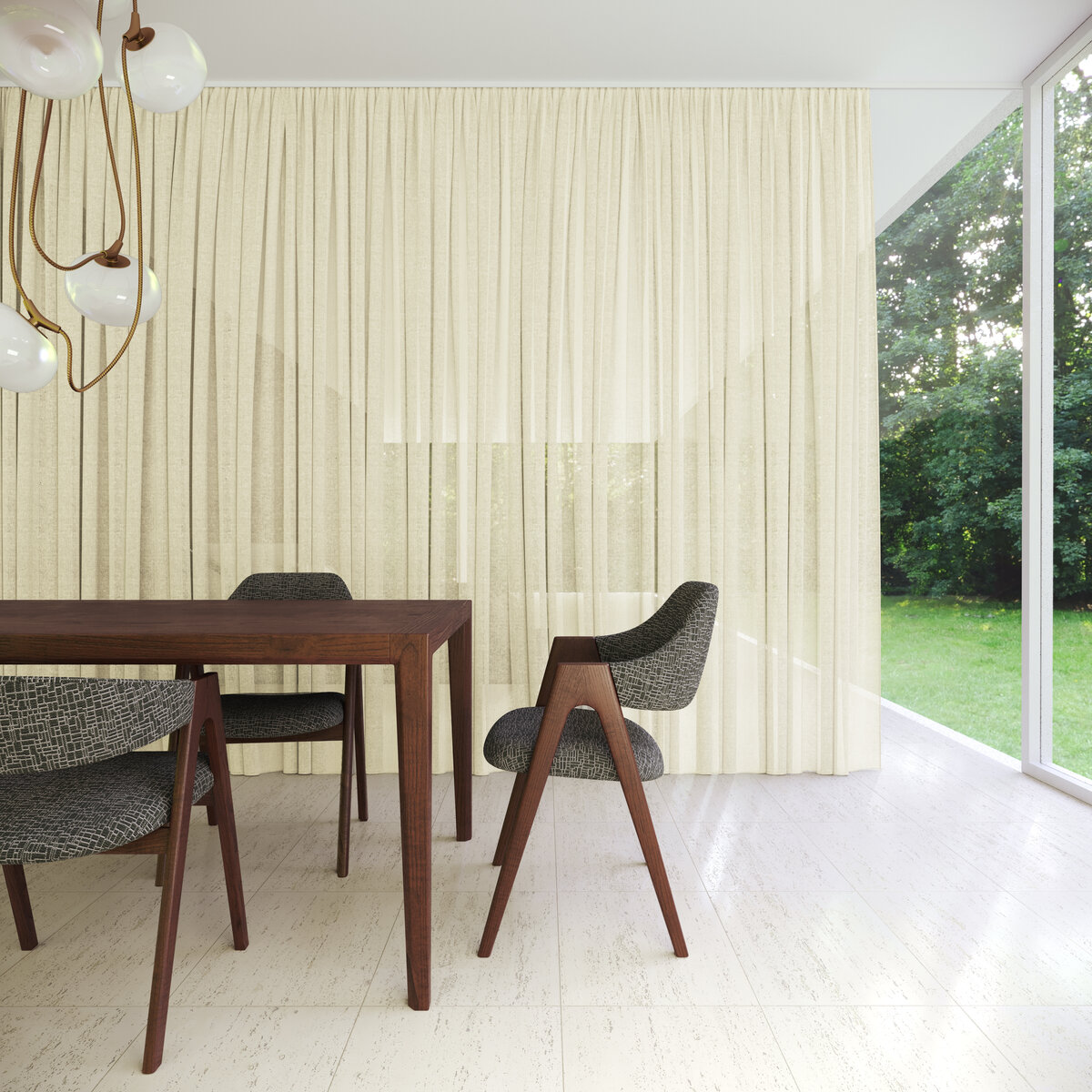 Laid-back, functional, sustainable. NEVA creates a homey atmosphere, provides privacy and is sustainable purely due to its durability and longevity. The recycled synthetics used in the fabric only serve to improve the sustainable credentials of this easycare and flame-retardant curtain even more. Ten relaxed colors to suit every living style and taste as well as ensuring a clear conscience.