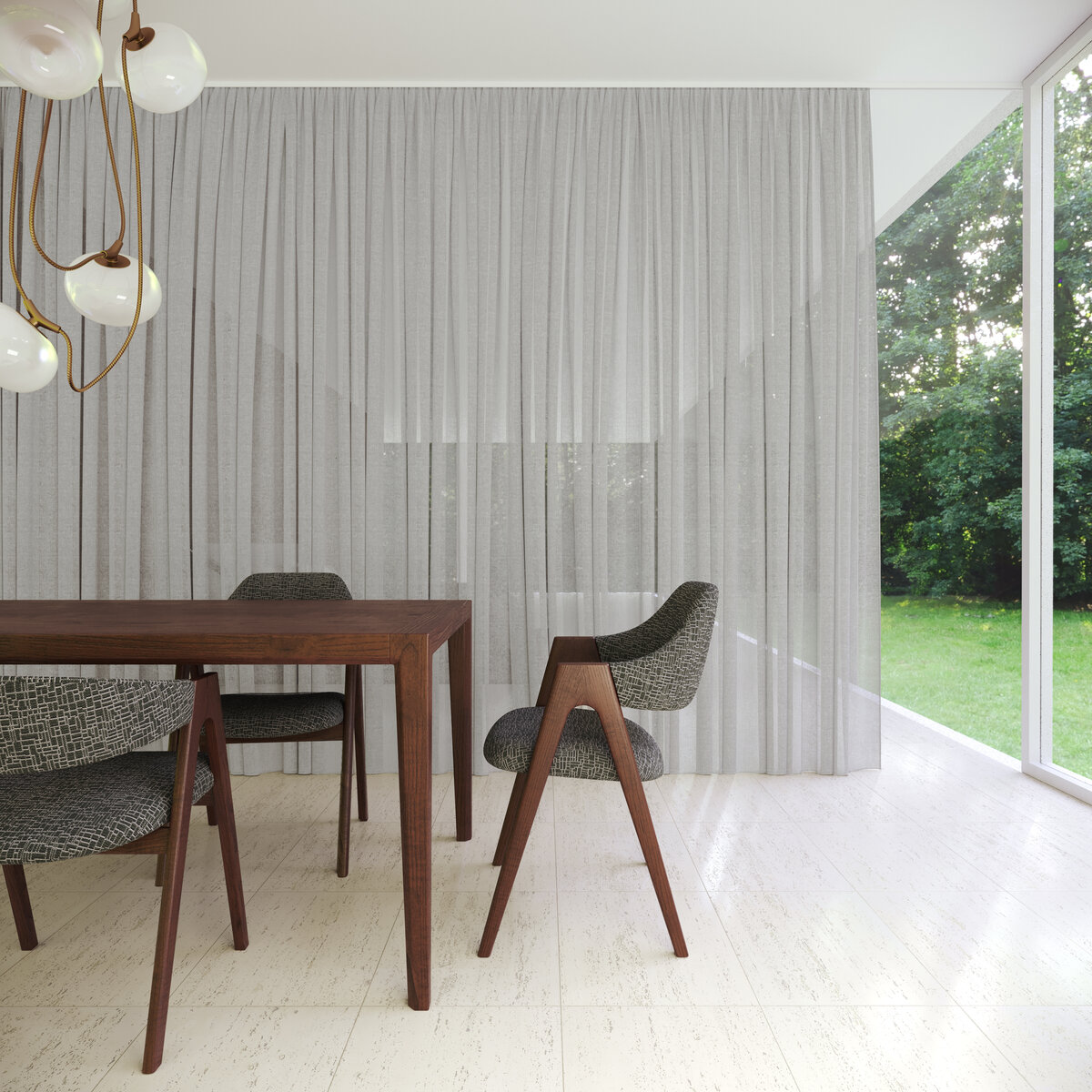 Laid-back, functional, sustainable. NEVA creates a homey atmosphere, provides privacy and is sustainable purely due to its durability and longevity. The recycled synthetics used in the fabric only serve to improve the sustainable credentials of this easycare and flame-retardant curtain even more. Ten relaxed colors to suit every living style and taste as well as ensuring a clear conscience.