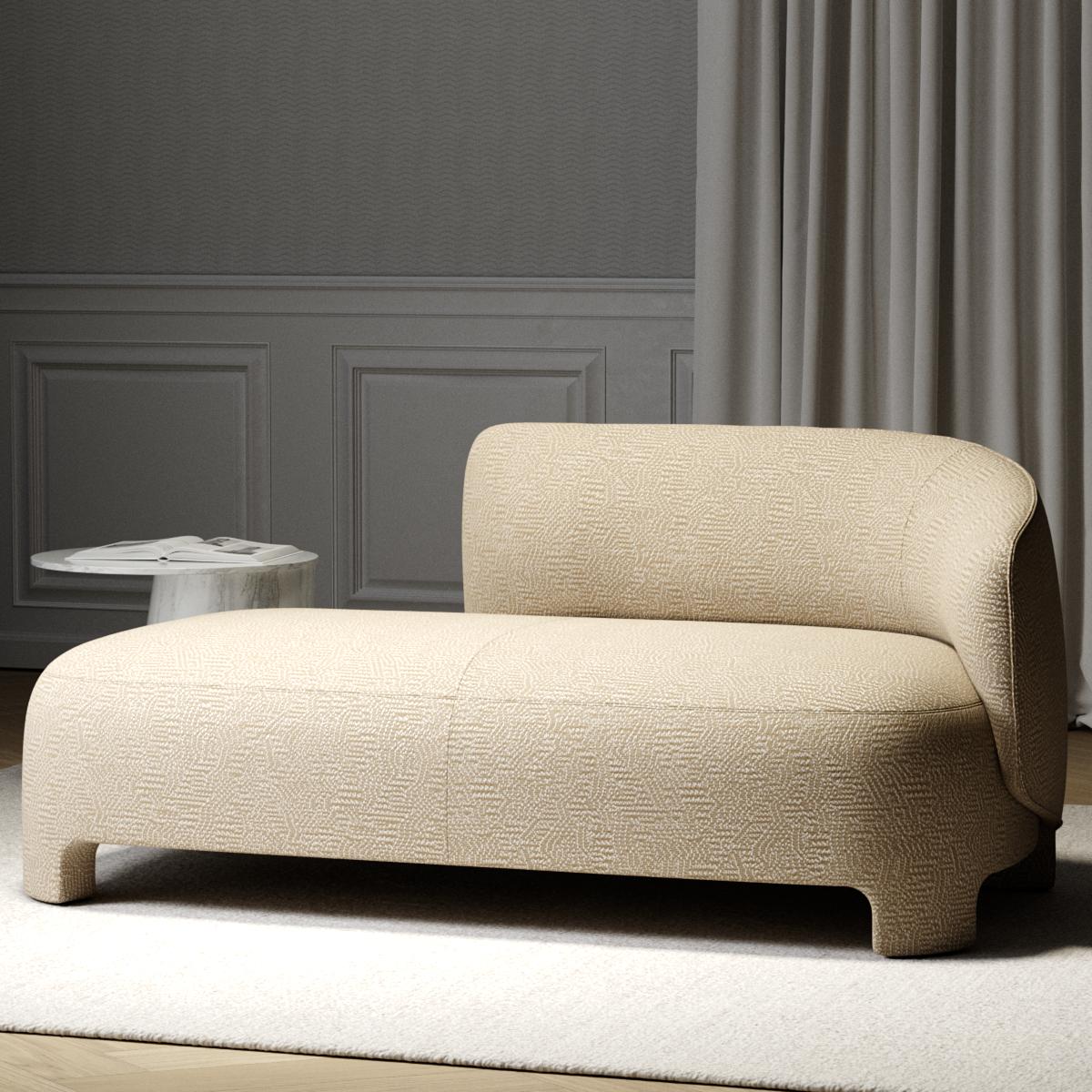 A jacquard velvet with strong character and rich expressiveness—mythical and precious, like an ancient textile with a patina that tells stories of a passionate, storied past. The softened linework resembles the weathered grain of a natural surface, evoking a musical composition open to interpretation.