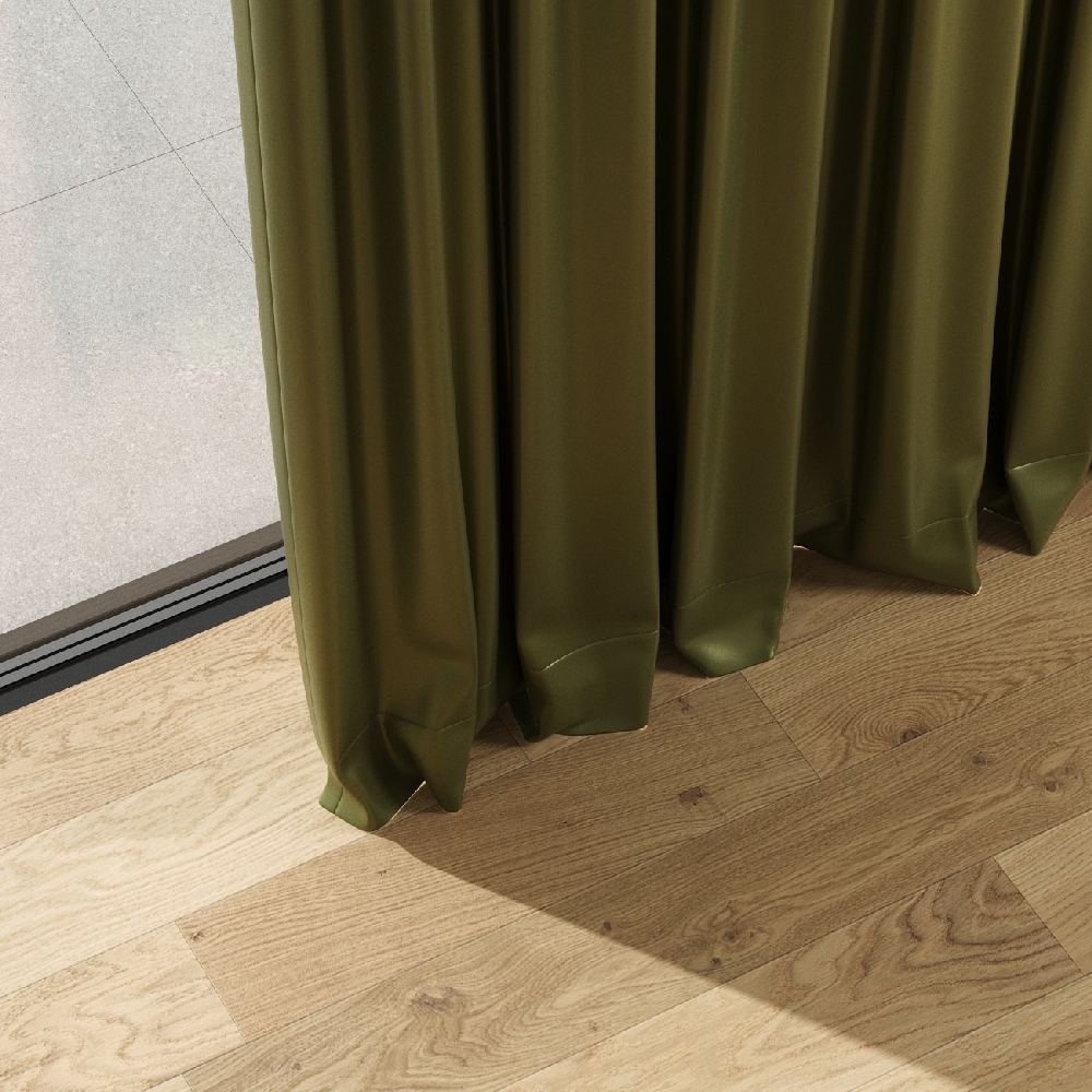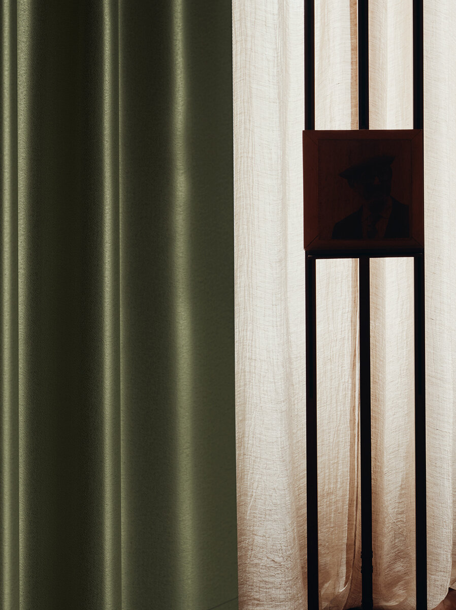 The innovative blackout curtain boasts contemporary simplicity and a modern color palette. The double-face fabric, which can be used from both sides, darkens the room 100% with complete window coverage thanks to a special invisible coating. The front and reverse sides are identical in terms of their finely and densely woven surface but vary slightly in color tone. This sophisticated two-sided effect opens up various design options for individual color concepts. NOCTURNE is ideally suited for window treatments, room-dividing solutions, or glass façades where the fabric is visible from both sides.