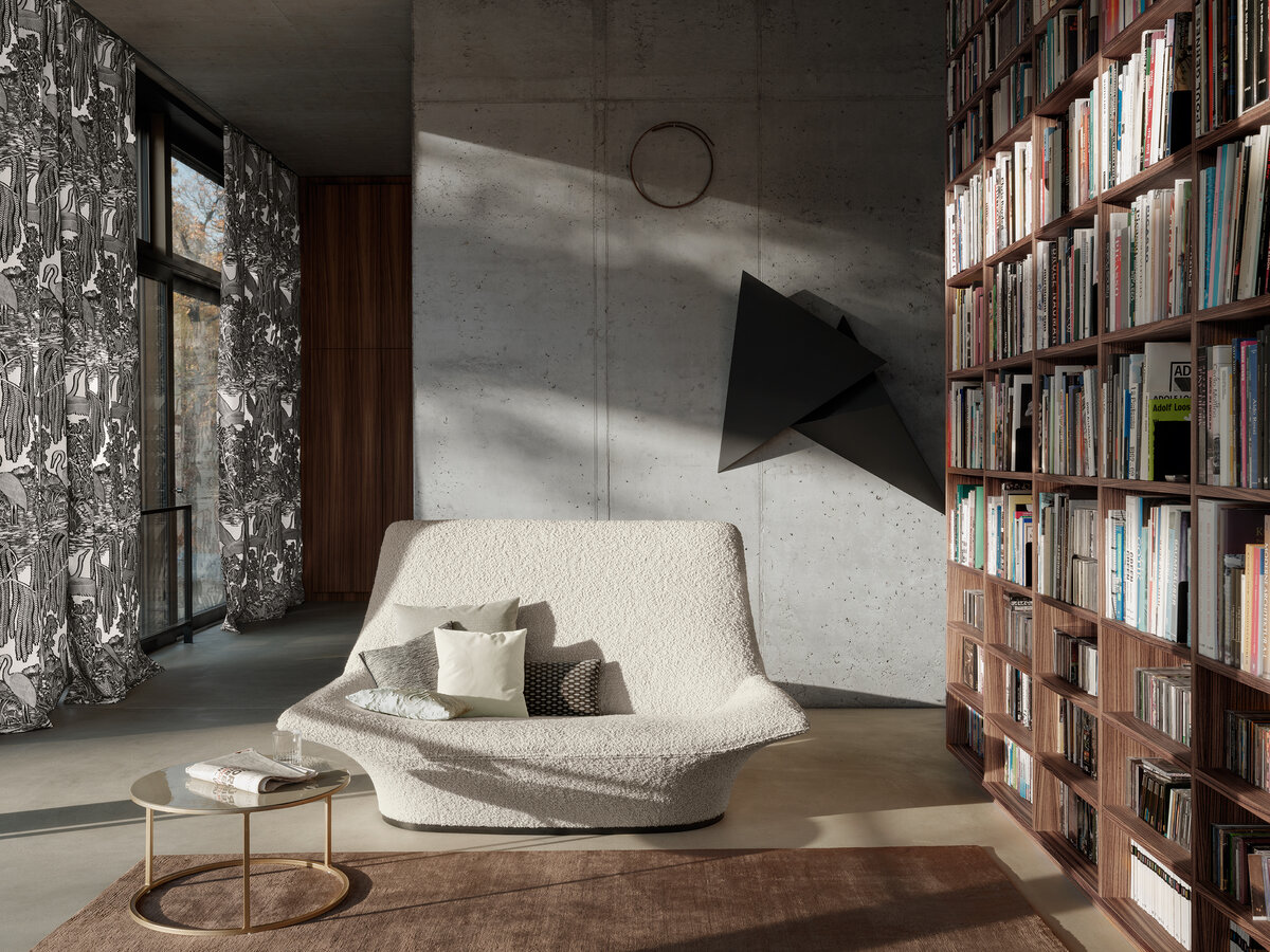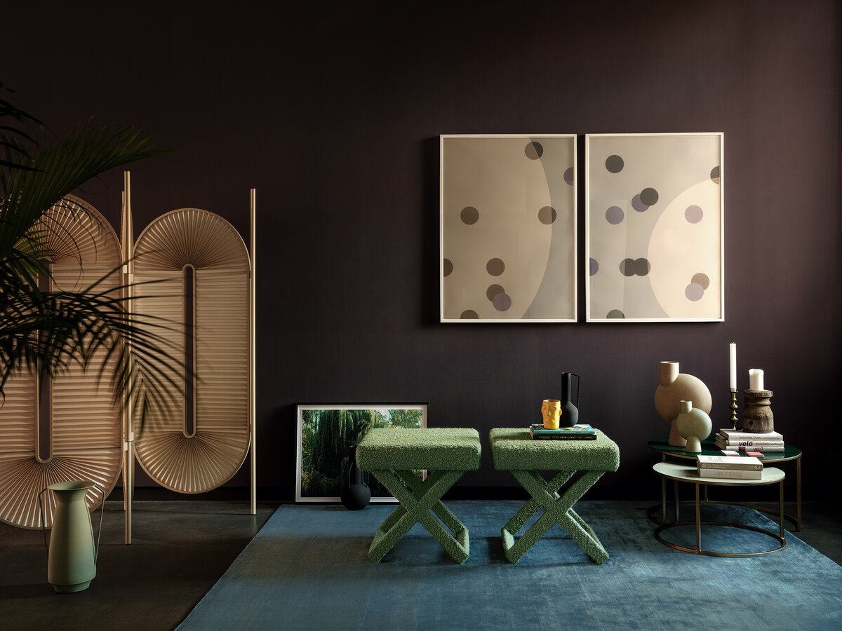 NOMAD's woolly soft, three-dimensional texture reflects the original characteristics of a highland plain where mountain plants, mosses, lichens and rocky areas form a harmonious carpet of colour nuances and textures. When you touch it, you immediately feel the high natural fiber content of this hard-wearing mixed fabric.