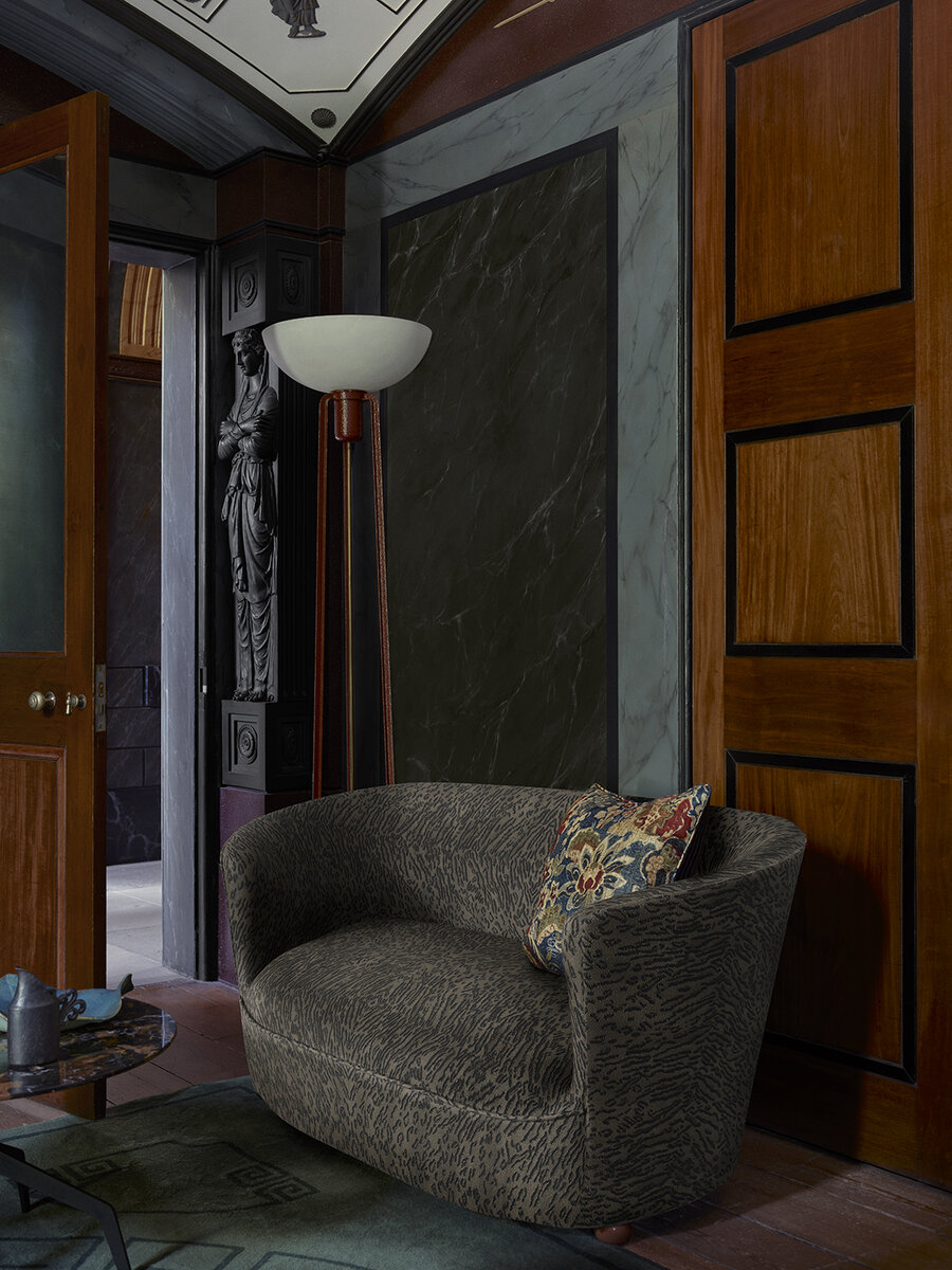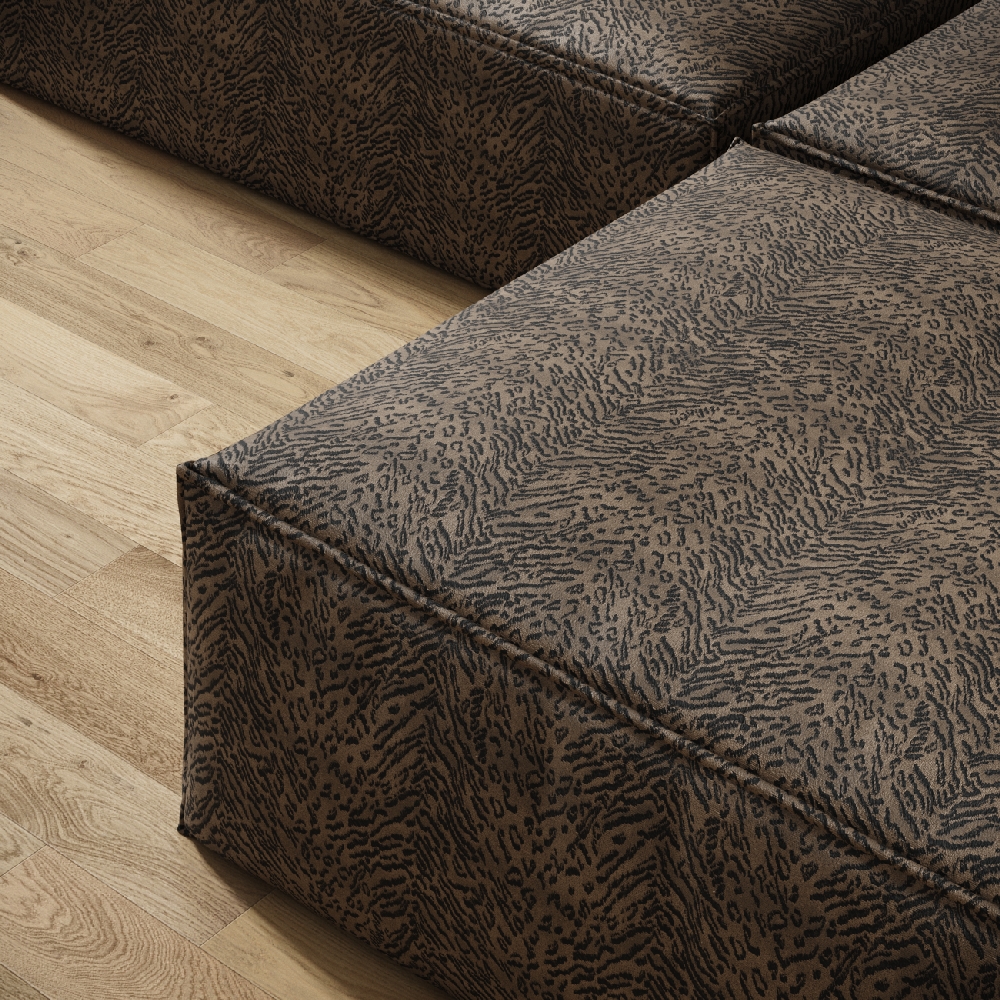 A rich cotton-pile upholstery velvet available in three natural colourways depicting the unique patterning of the eponymous wild cat, ‘Oncilla’ is a unique take on traditional animal-skin designs. An extra pile in the cloth, which is cut longer than the ground, gives an interesting fil coupé effect.