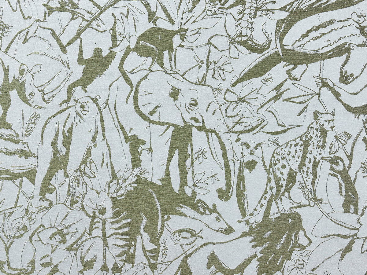 The highlight of this collection is ONE WORLD, an illustrative collage of many endangered species in full fabric width, which was interpreted as a sophisticated jacquard made with cotton and European linen in an Italian weaving mill. The subtle color contrast makes the design of the decorative fabric look rather abstract when used as a curtain, while the figurative character is more apparent when used as an upholstery fabric. It’s a fabric that is sure to be a real talking point.