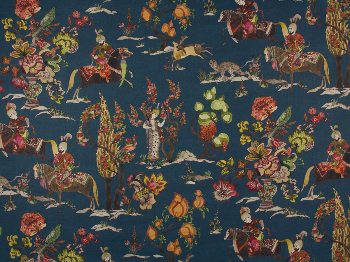 Printed on a 100% linen ground cloth from artwork developed exclusively for Travers, Ottoman Riders is a fanciful design of Ottoman era figures in a dream-like garden. The unusual and vivid colourations enhance the playful effect of this original design.