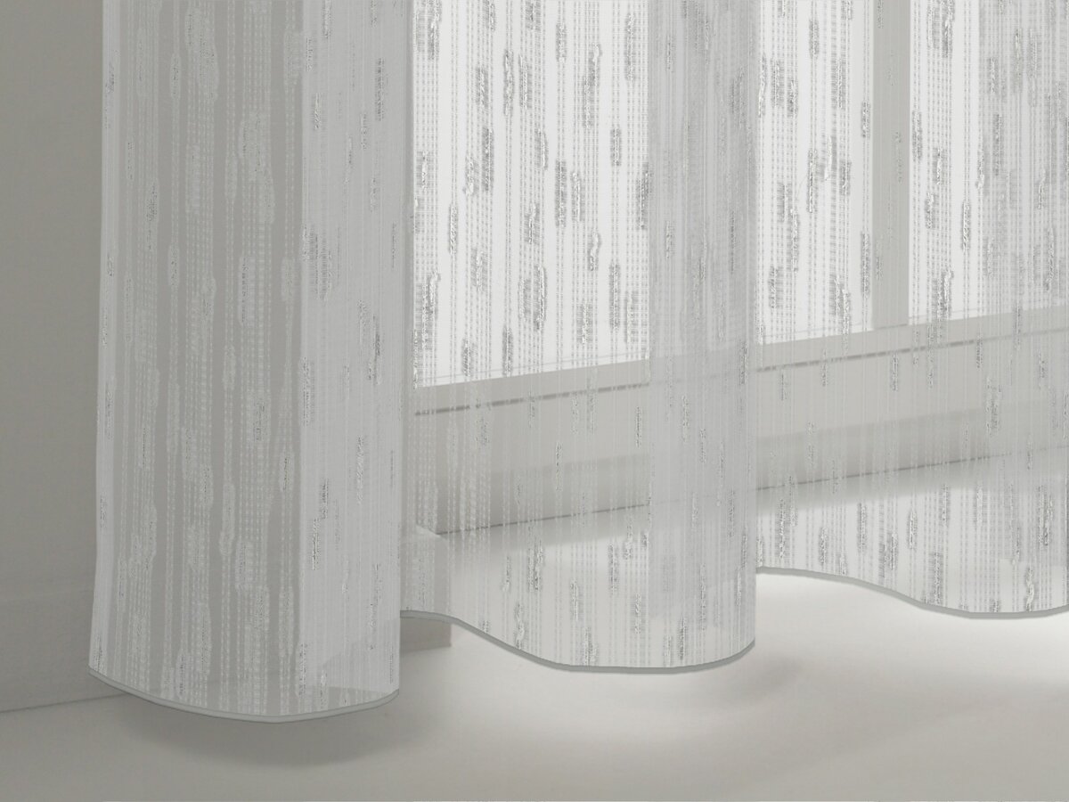 This allover pattern recalls the light reflected off the soft waves of a lagoon, like cross-hatched twinkles spreading across the transparent background - in both white and contemporary brass and copper shades.