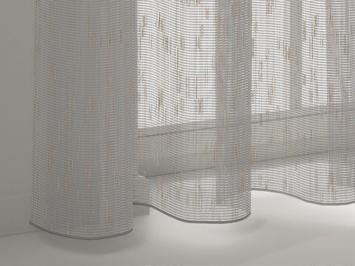 This allover pattern recalls the light reflected off the soft waves of a lagoon, like cross-hatched twinkles spreading across the transparent background - in both white and contemporary brass and copper shades.