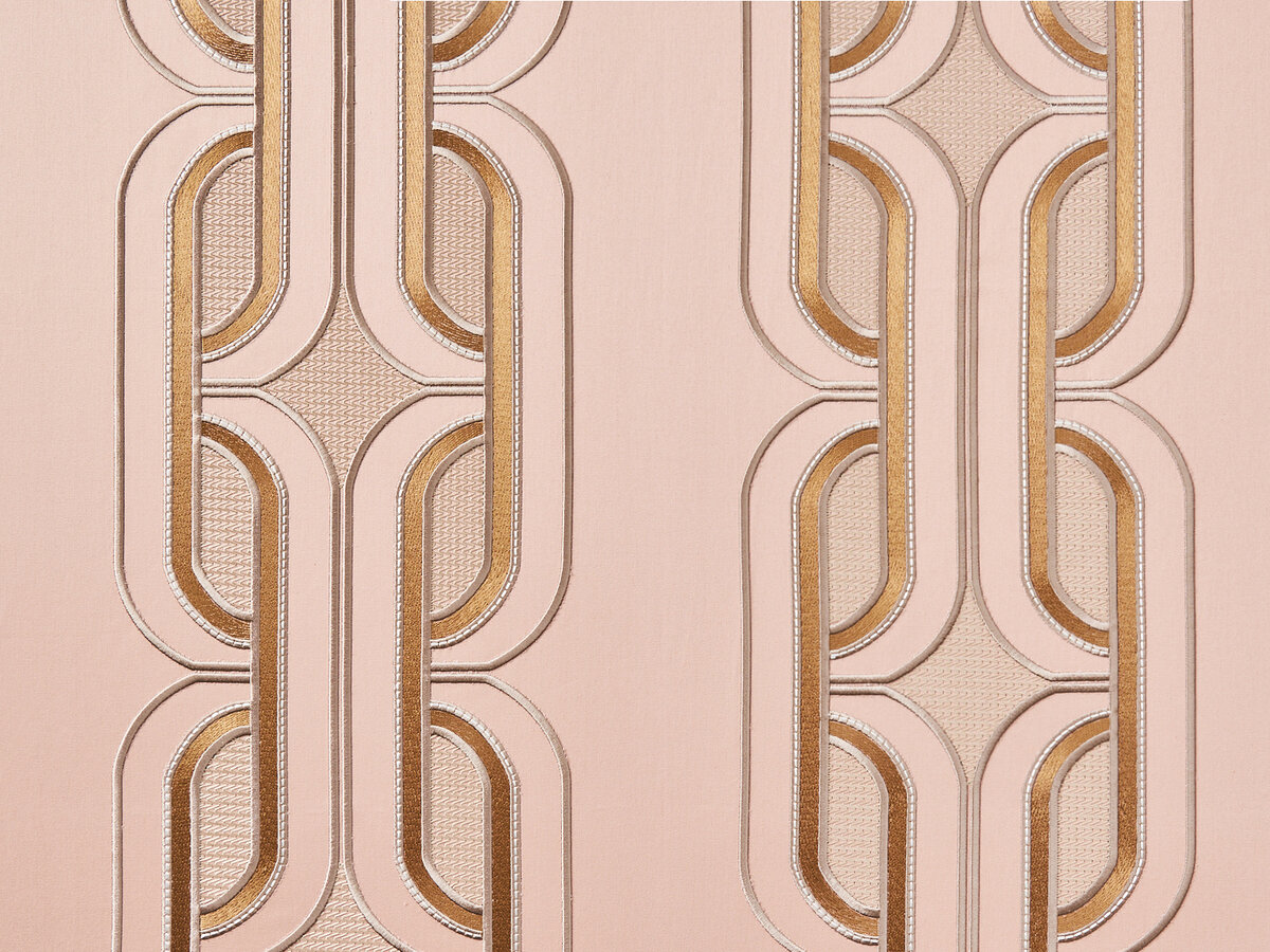 PALAZZO DUCALE is a textile masterpiece that captivates with its handcrafted style. The artful embroidery of this noble decorative stripe on fine cotton satin fascinates with its subtle colorfulness and three-dimensional relief. This contemporary interpretation creates a graphic effect that showcases the refined beauty of this sophisticated item.