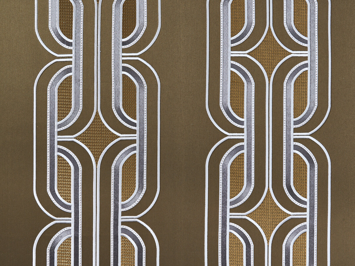 PALAZZO DUCALE is a textile masterpiece that captivates with its handcrafted style. The artful embroidery of this noble decorative stripe on fine cotton satin fascinates with its subtle colorfulness and three-dimensional relief. This contemporary interpretation creates a graphic effect that showcases the refined beauty of this sophisticated item.