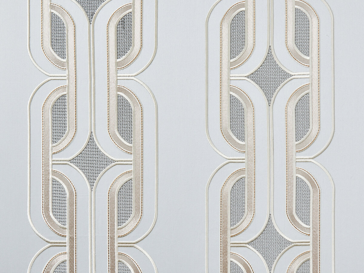 PALAZZO DUCALE is a textile masterpiece that captivates with its handcrafted style. The artful embroidery of this noble decorative stripe on fine cotton satin fascinates with its subtle colorfulness and three-dimensional relief. This contemporary interpretation creates a graphic effect that showcases the refined beauty of this sophisticated item.