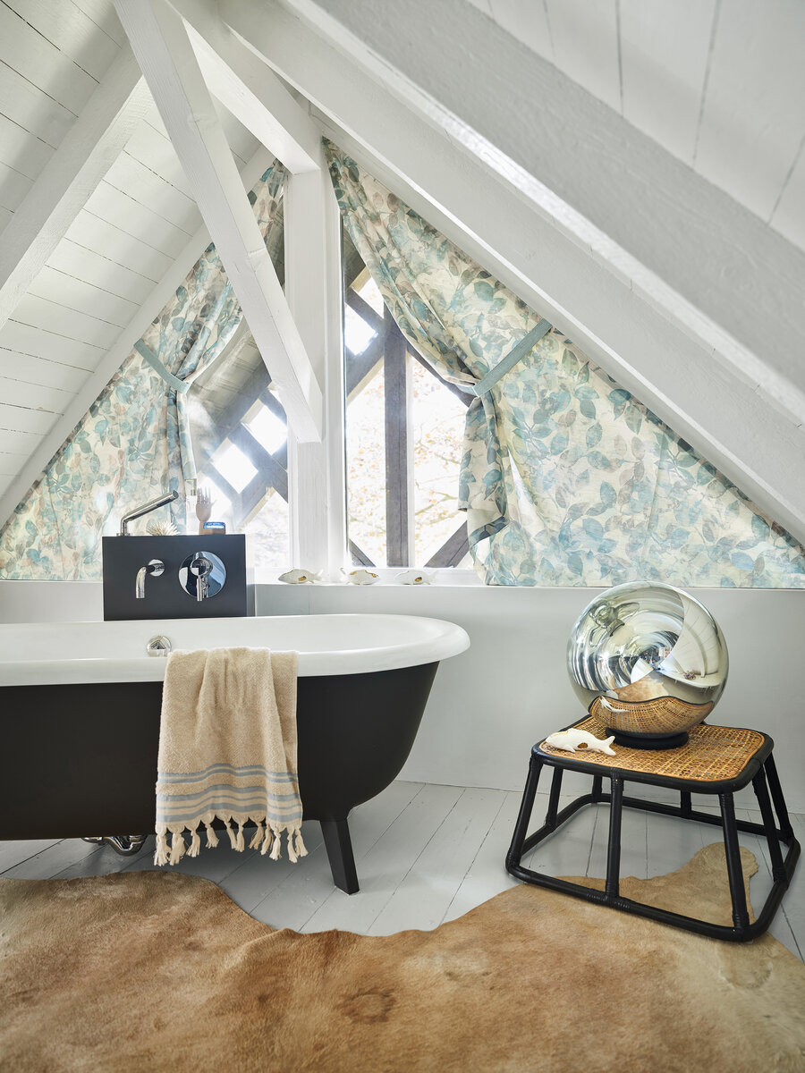 PALILA celebrates the fascination of an enchanted forest of leaves in the middle of your four walls. Impressive and unobtrusive, it lets your eyes wander through the picturesque watercolour- like design, vividly arranged with overlays and gradients. The easy-care decoration fabric in the noble look of Tussah silk rounds off the multicoloured potpourri of leaves in dark, warm shades of clay.