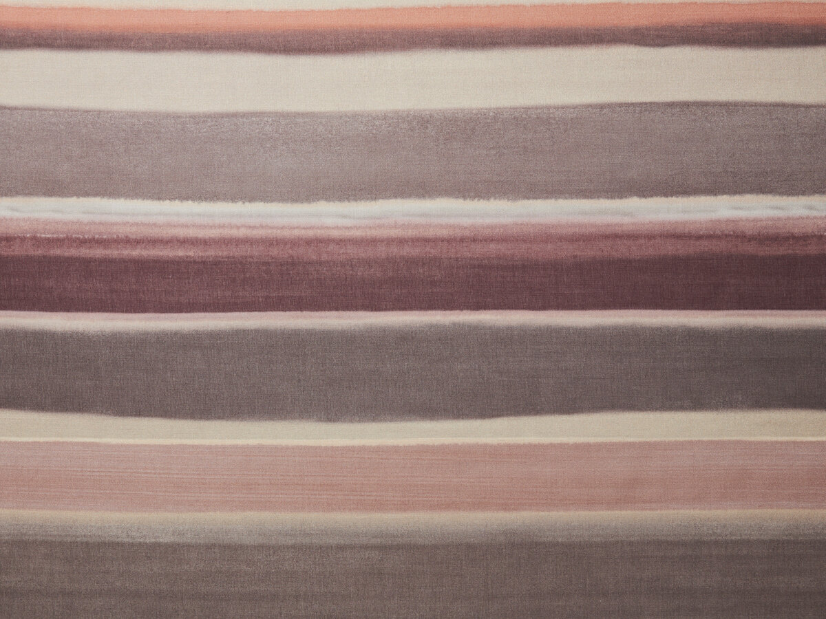 Like a blurred landscape in the distance or a flickering mirage, PANORAMA RE FR plays with a vibrating colour gradient. Watercolour stripes form the base of the panel design and continue towards the top. The repeat extends over the entire height of the fabric and runs endlessly widthways.