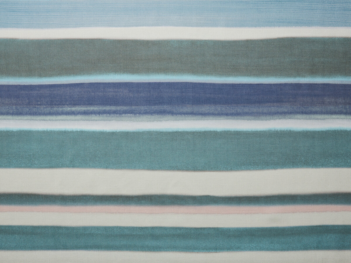 Like a blurred landscape in the distance or a flickering mirage, PANORAMA RE FR plays with a vibrating colour gradient. Watercolour stripes form the base of the panel design and continue towards the top. The repeat extends over the entire height of the fabric and runs endlessly widthways.