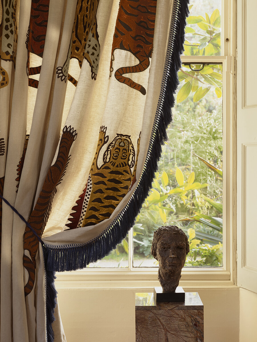 A significant emblem in East Asian iconography, ‘Panthera’ reinterprets stylised motifs of tiger and leopard pelts through large-scale, heavily textured, hand-guided embroidery on linen. Tigers symbolise protection and good luck, whilst leopards are considered a symbol of strength and power. Unique and dramatic yet convivial, through its contemporary interpretation ‘Panthera’ adds a splash of drama that is still rooted in tradition.