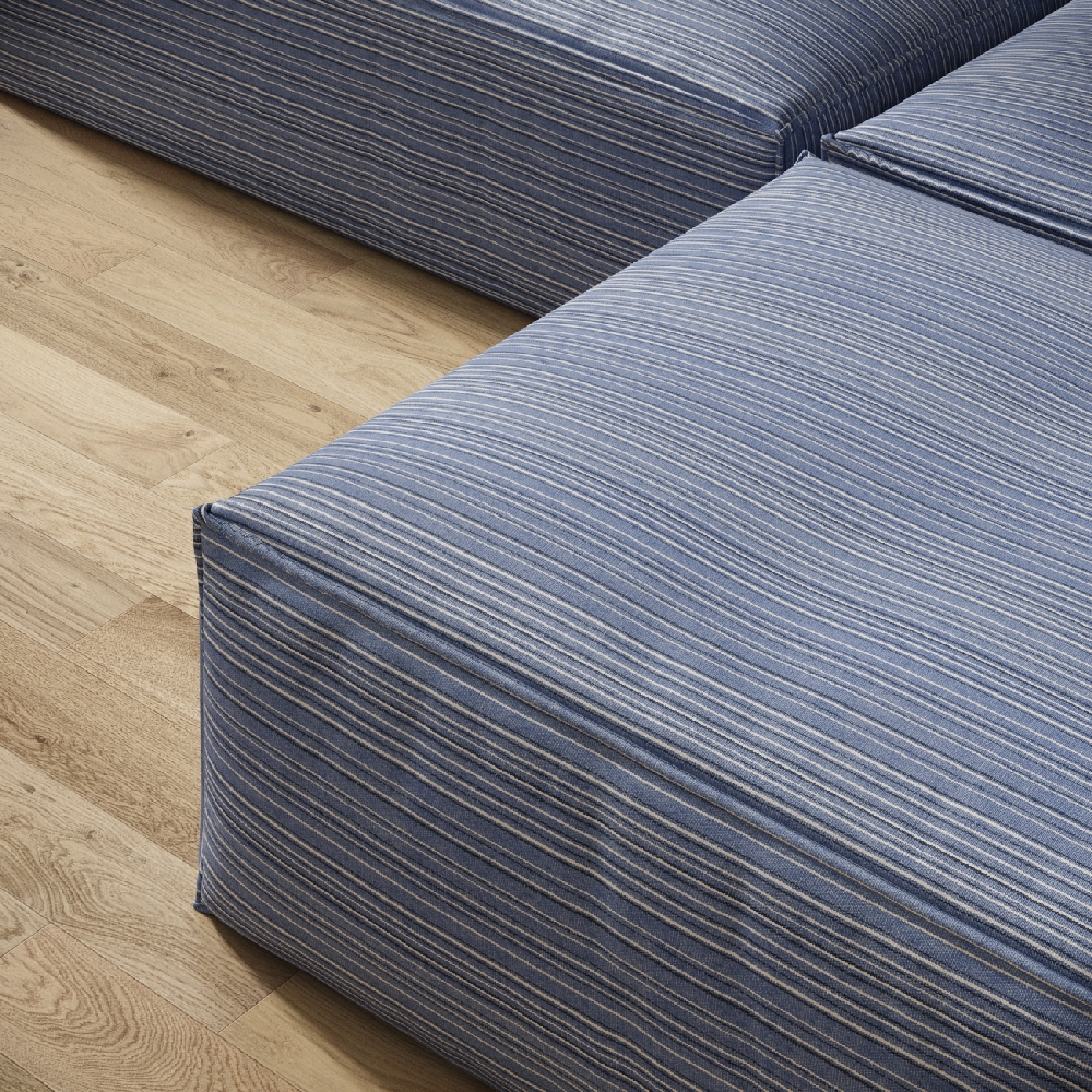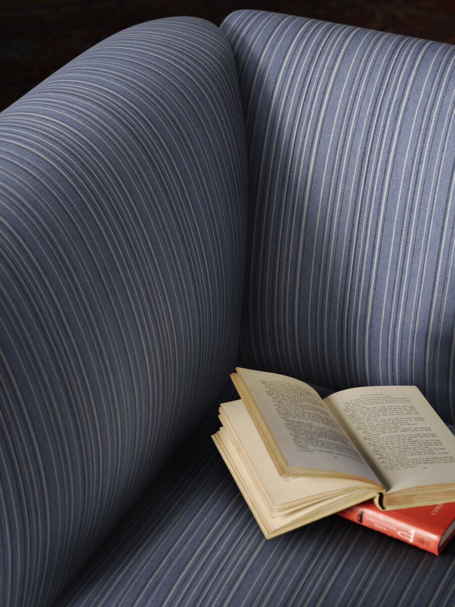 The small-scale offset ribbons of colour in ‘Parade Stripe’ make it an easy-to-use and versatile design. Reminiscent of the movement of pattern and light on antique carousel rides, this fabric is suitable for both drapery and upholstery, and is available in six clear colour stories.