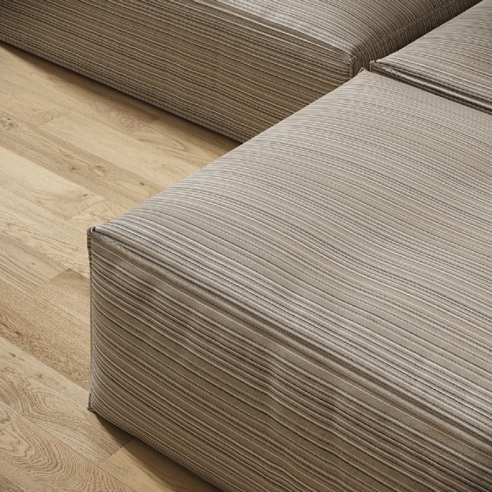 The small-scale offset ribbons of colour in ‘Parade Stripe’ make it an easy-to-use and versatile design. Reminiscent of the movement of pattern and light on antique carousel rides, this fabric is suitable for both drapery and upholstery, and is available in six clear colour stories.