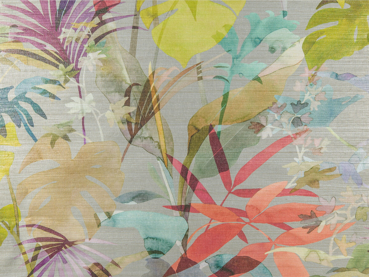Paradiso Wall takes you on a journey into the heart of the jungle. Leaves in varying shapes and sizes overlap to create a lavish, expressive motif. Perfectly hand-painted in a watercolour style, this emotive design thrills with expressive shades. The woven Raffia background has an earthy look that perfectly underscores this motif's wild and natural yet elegant look.