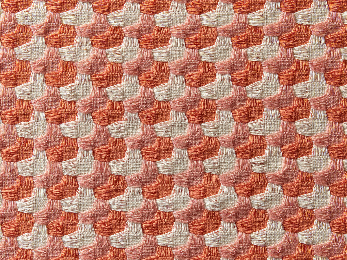 A magnified houndstooth pattern. All will appreciate the weaving process used to create this handcrafted woven fabric. The warp and weft are clearly recognisable and form a wonderful blend of colours; a lovely complement to the other fabrics in this summery collection. Its name reveals the inspiration for its style - the tile pattern of a Mediterranean patio.