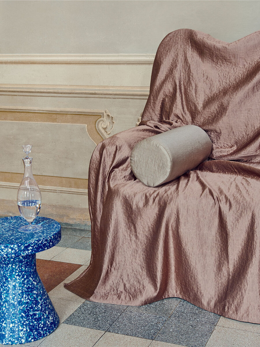 The natural and subtle sheen of the silk is further enhanced by the satin weave of this textile, which is woven on a fine silk warp.