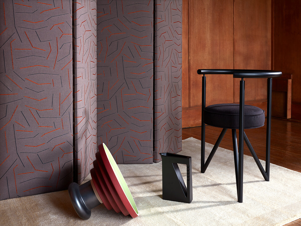 Thanks to its flame-retardant material composition, the dense yet soft-flowing decorative fabric is equally suited to private and public spaces and has excellent acoustic properties.