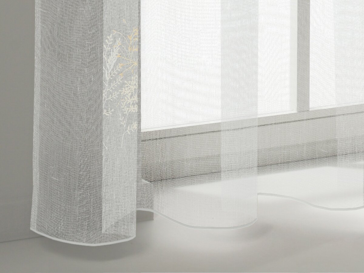 PIPPA makes the day blossom and flourish. What’s more, this fabric is available in three different colours, each of which have four embroidery yarns in well-matched colours. The first colour combination features white and ecru nuances. The second creates harmonies using ivory and beige tones, while the third uses a captivating combination of delicate ecru and shades of green. The embroidery design consists of three beautiful floral compositions.
