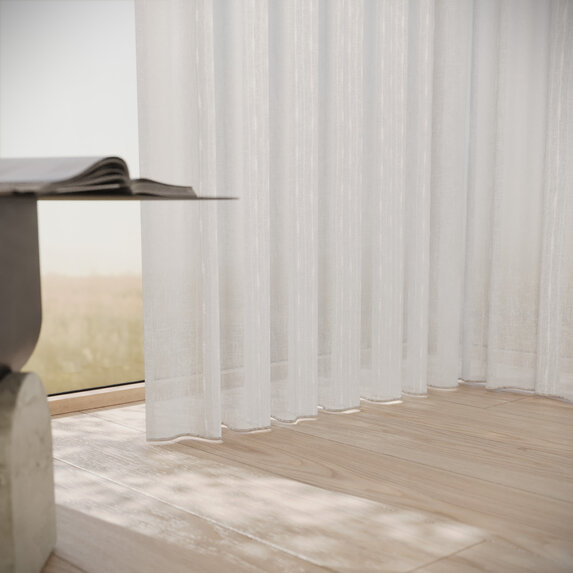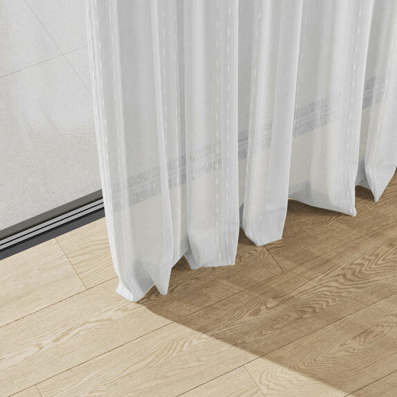 PURE WHITE TAPE offers quiet sophistication. Its gentle vertical stripe brings subtle structure while allowing light to glide across bouclé and looped textures. Soft neutrals create a calming atmosphere—simplicity elevated into beauty.