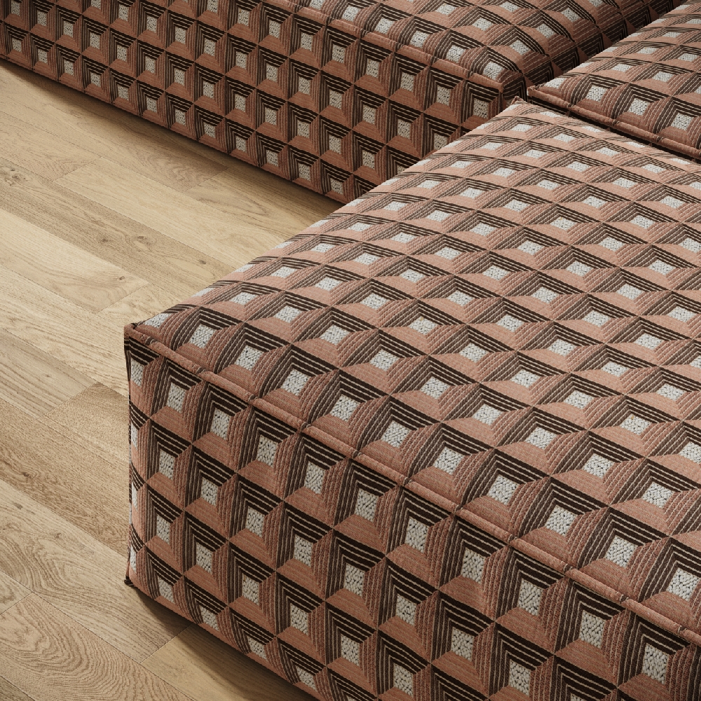 Our QUADRA upholstery fabric is a riff on the classical architectural motif – the coffer or caisson. In Greco-Roman antiquity this was a popular decorative design element for surfaces, as seen in the coffered dome of the Roman pantheon for example, providing additional optical height and depth and improving acoustics.