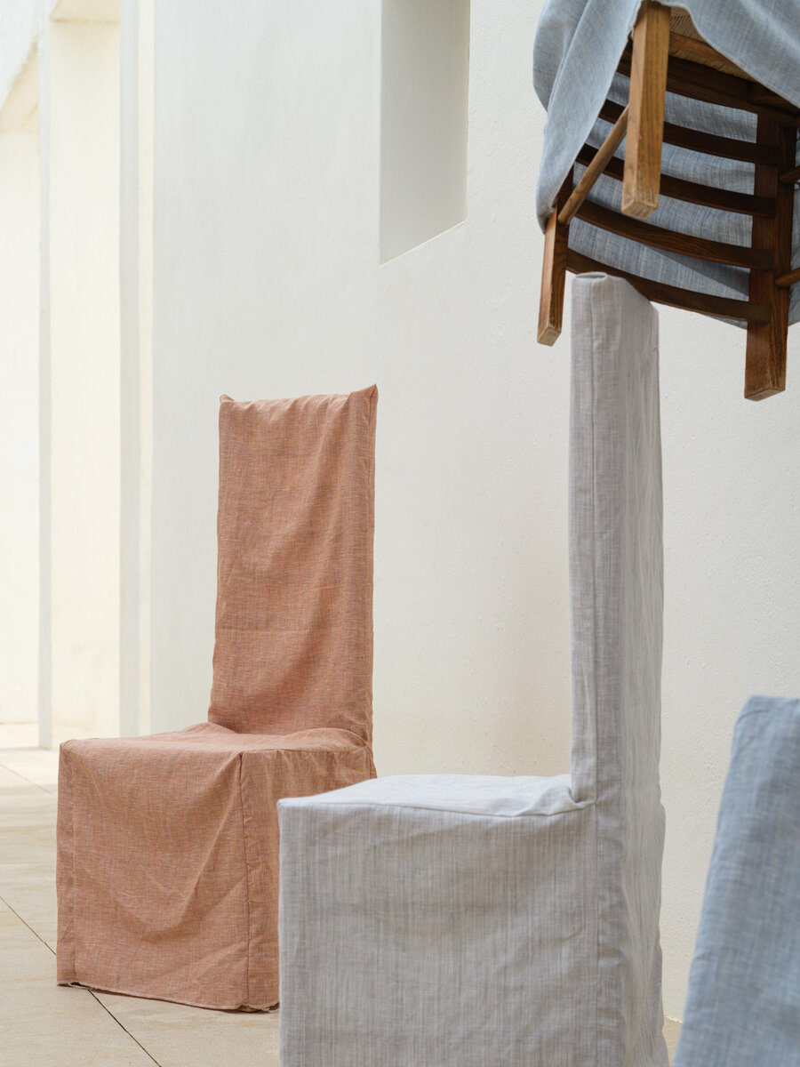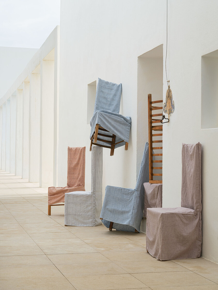 RAMATUELLE is a fabric made with a linen warp and wool weft. In perfect harmony with the nuances of FLEUR DE LAINE, the range of yarn-dyed colors is a delicate and exclusive melange. Its gentle stone-washed finish leaves it soft and structured. It is sublime when hung.