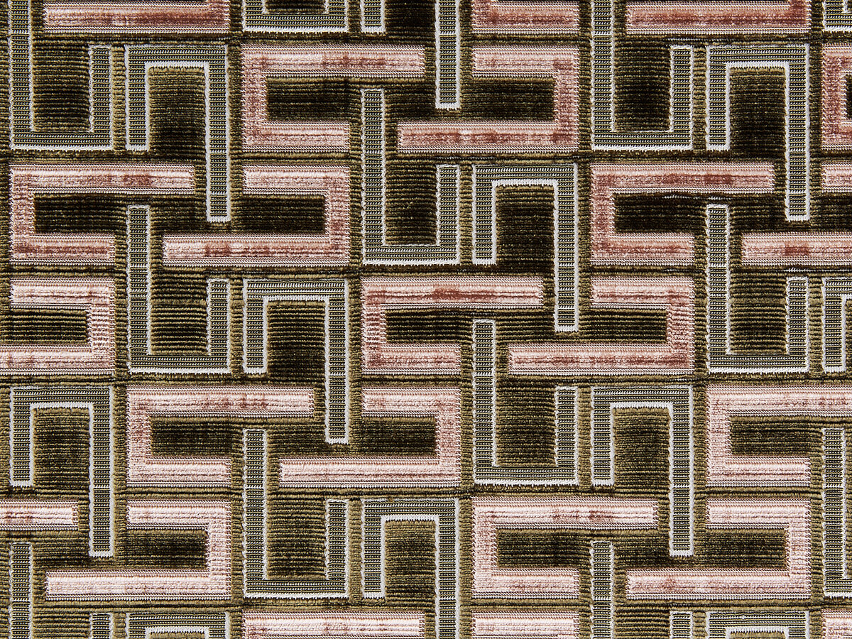 RAZIONALISMO is a lavishly produced upholstery fabric in jacquard-patterned velour, made particularly eye-catching thanks to its stylish color combination and the rhythmic character of the all-over effect of the design.