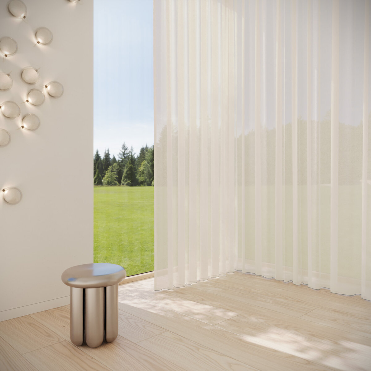 REFLEKT stands out with its iridescent color effects. Its interplay of warp and weft creates dynamic sophistication. The flame-retardant, sustainably produced sheer offers excellent glare and privacy control while maintaining high visibility—perfect for homes, offices and public spaces. A balanced fusion of design, function and color.