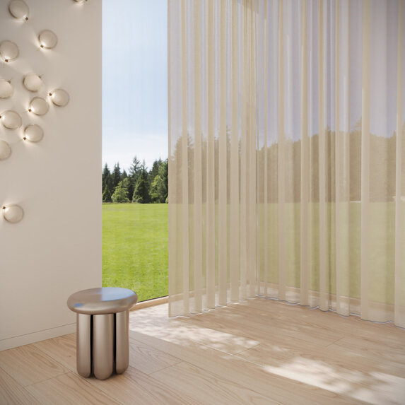 REFLEKT stands out with its iridescent color effects. Its interplay of warp and weft creates dynamic sophistication. The flame-retardant, sustainably produced sheer offers excellent glare and privacy control while maintaining high visibility—perfect for homes, offices and public spaces. A balanced fusion of design, function and color.