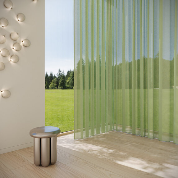 REFLEKT stands out with its iridescent color effects. Its interplay of warp and weft creates dynamic sophistication. The flame-retardant, sustainably produced sheer offers excellent glare and privacy control while maintaining high visibility—perfect for homes, offices and public spaces. A balanced fusion of design, function and color.