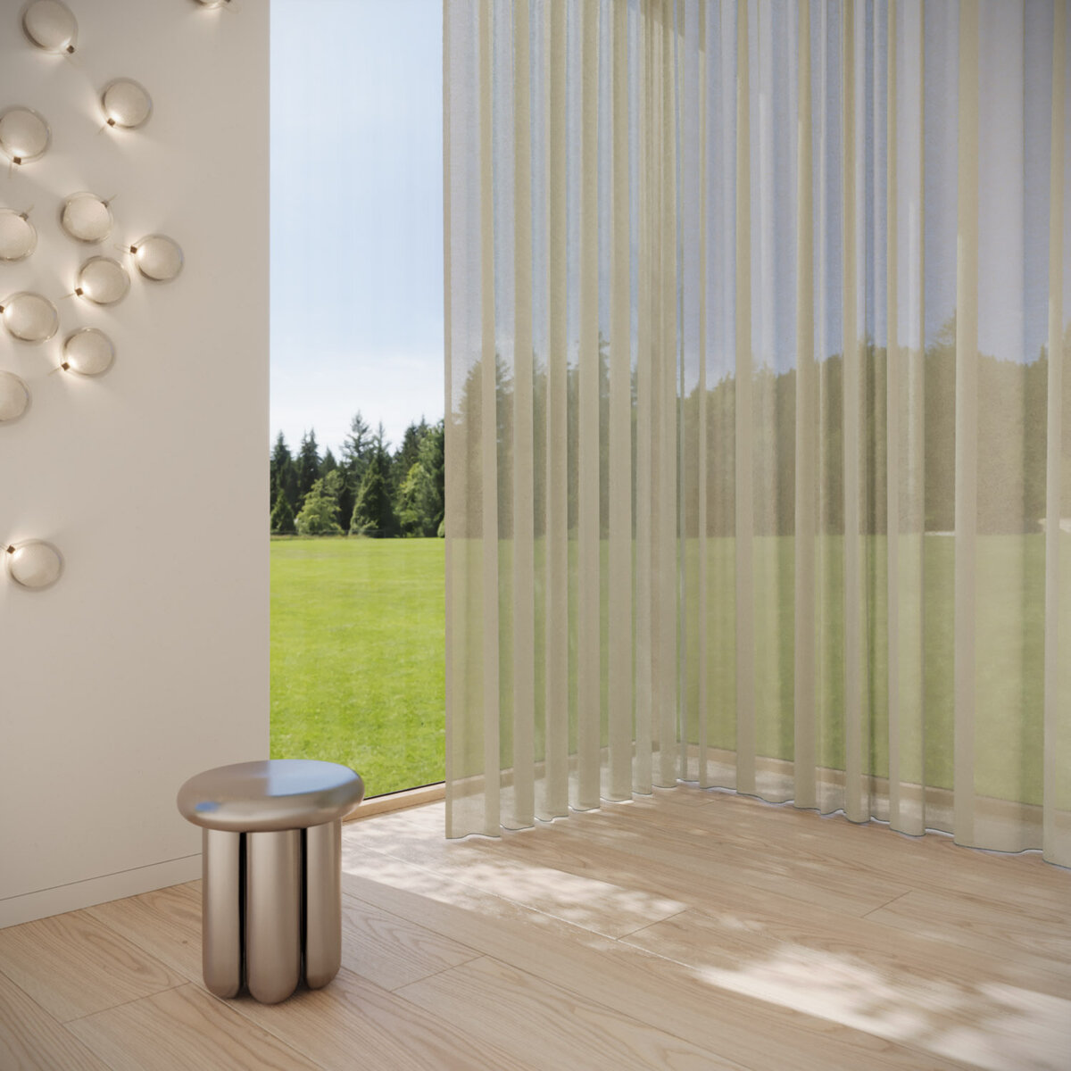 REFLEKT stands out with its iridescent color effects. Its interplay of warp and weft creates dynamic sophistication. The flame-retardant, sustainably produced sheer offers excellent glare and privacy control while maintaining high visibility—perfect for homes, offices and public spaces. A balanced fusion of design, function and color.