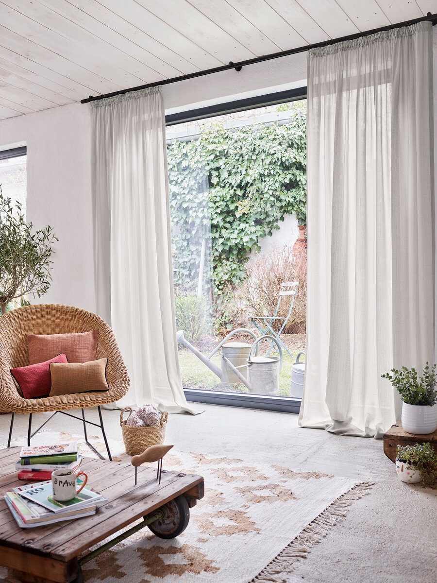 It‘s cosy, it‘s cool, it‘s casual – the it-piece REI. The semi-transparent and minimally striped woven fabric enchants with its attractive crashing, soft feel and colours in a light melange. It‘s good to know: The permanently flame-retardant in-between also finds its way back to unmistakable elegance after washing, by steaming over when hanging.