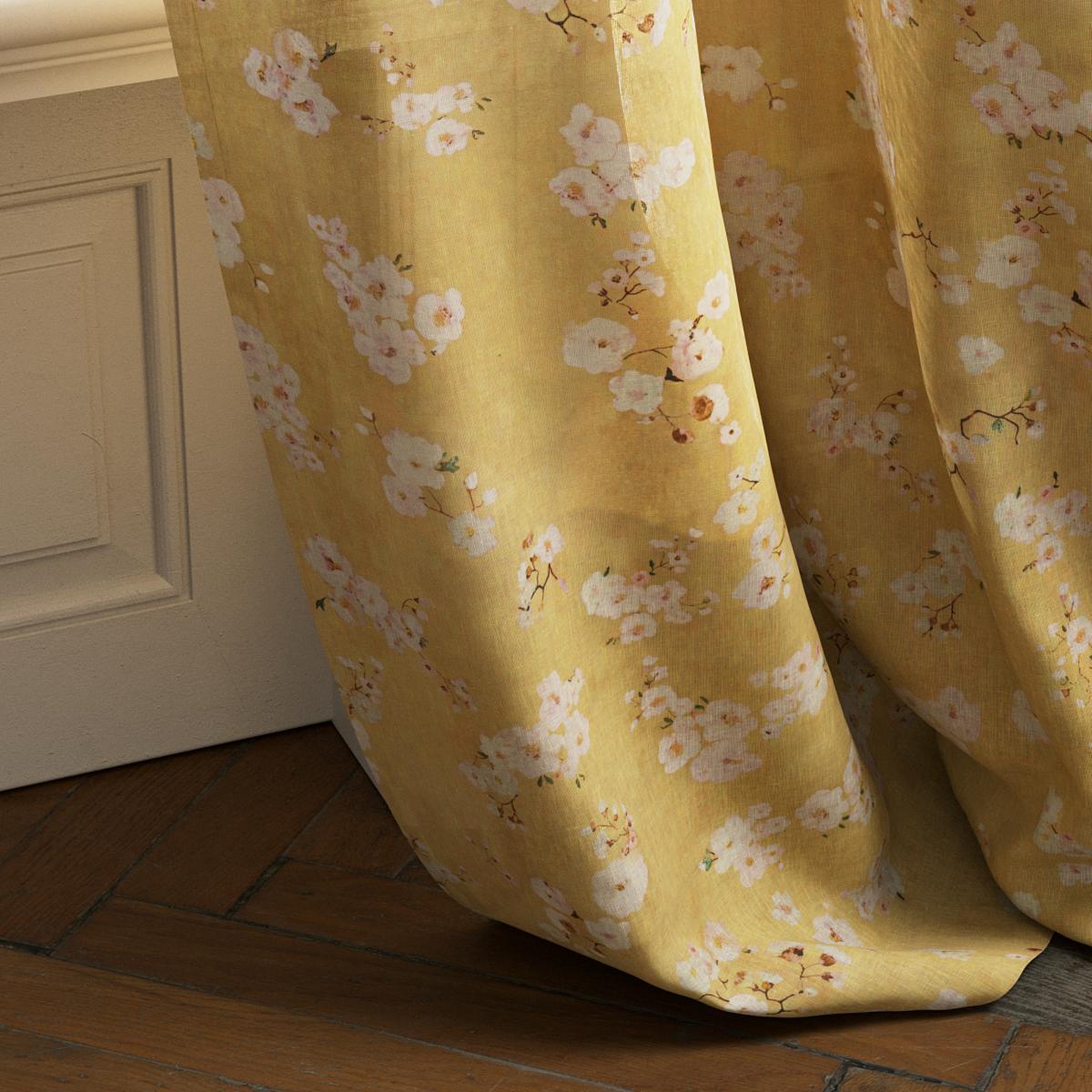 Digitally printed on long-fibre 100% linen at Lake Como, the design features blossoming fruit-tree flowers dancing across colored linen grounds. The delicate hand-painted petals create a refined, poetic aesthetic. A soft finish provides a modern look and an exceptionally smooth hand. Natural and fresh, RÊVERIE FLORALE shines in interiors that embrace garden views or a longing for nature.