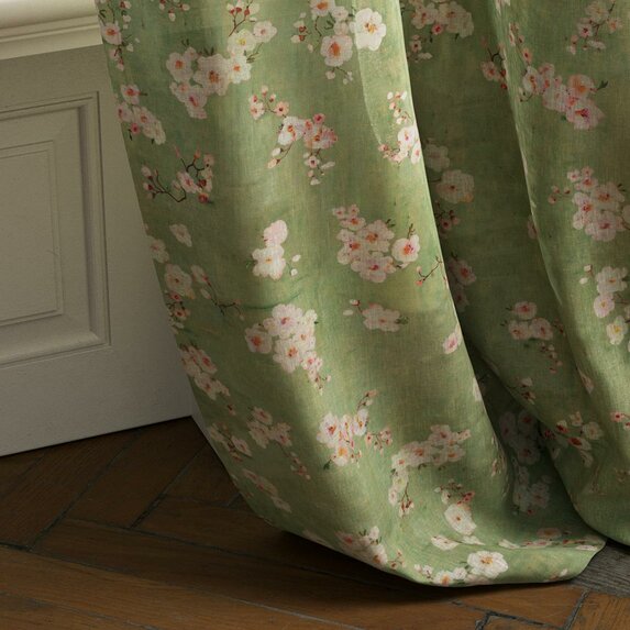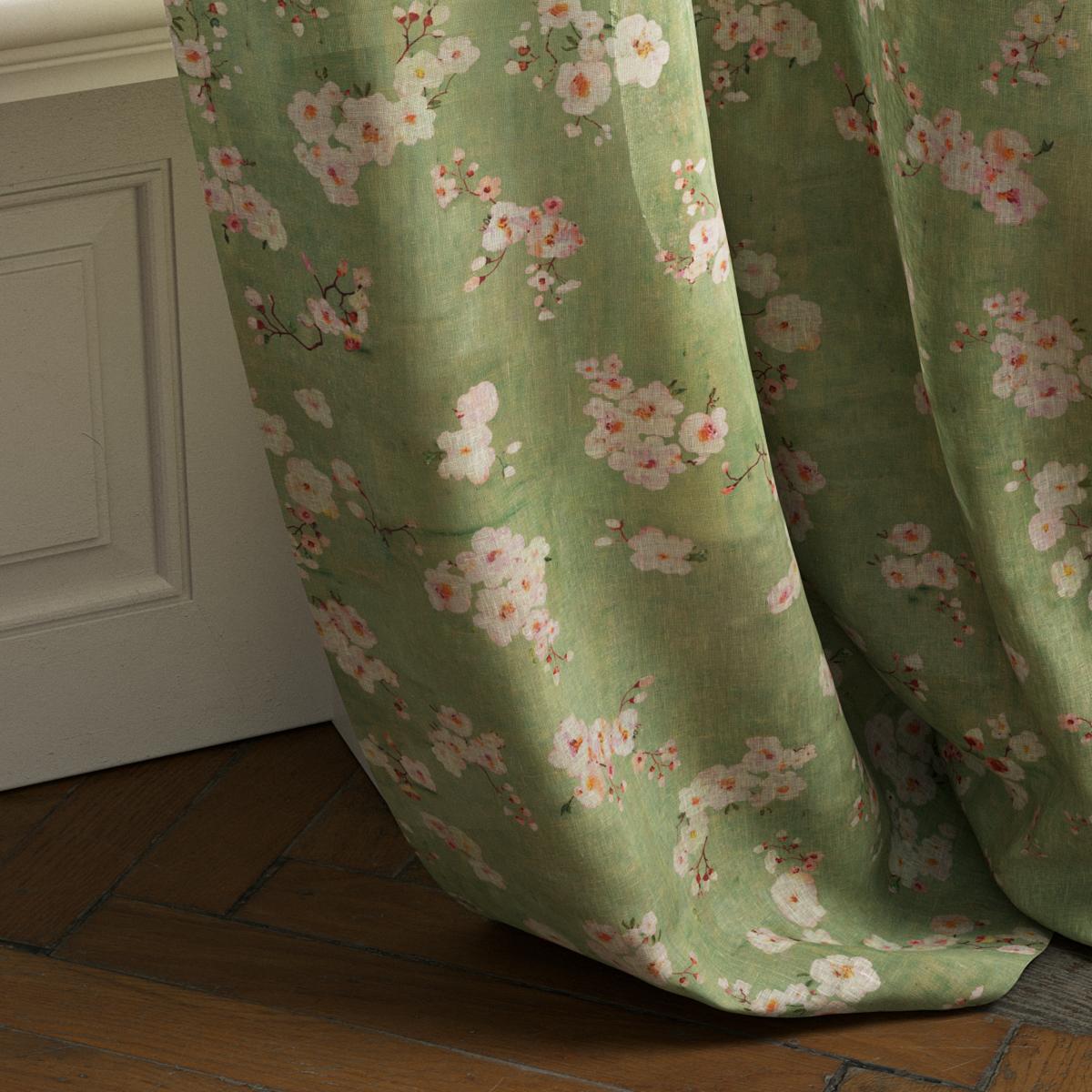 Digitally printed on long-fibre 100% linen at Lake Como, the design features blossoming fruit-tree flowers dancing across colored linen grounds. The delicate hand-painted petals create a refined, poetic aesthetic. A soft finish provides a modern look and an exceptionally smooth hand. Natural and fresh, RÊVERIE FLORALE shines in interiors that embrace garden views or a longing for nature.