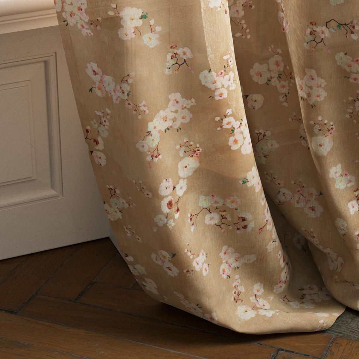 Digitally printed on long-fibre 100% linen at Lake Como, the design features blossoming fruit-tree flowers dancing across colored linen grounds. The delicate hand-painted petals create a refined, poetic aesthetic. A soft finish provides a modern look and an exceptionally smooth hand. Natural and fresh, RÊVERIE FLORALE shines in interiors that embrace garden views or a longing for nature.
