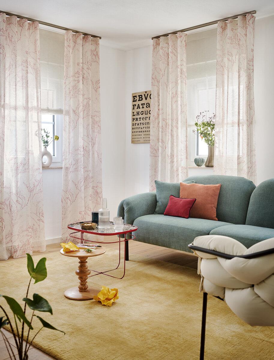 REVIN transports your eyes to a mystical forest of mist. Its skandi-style floral print enhances the three-dimensionality of the lively base fabric REVAL. Bold branches interplay with delicate shadows to create a fascinatingly beautiful depth. With 39 % recycled material, REVIN thanks its natural role model from real life with more sustainability.